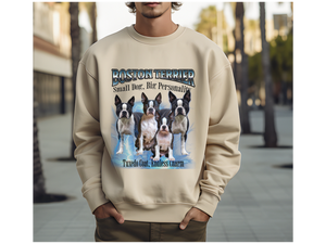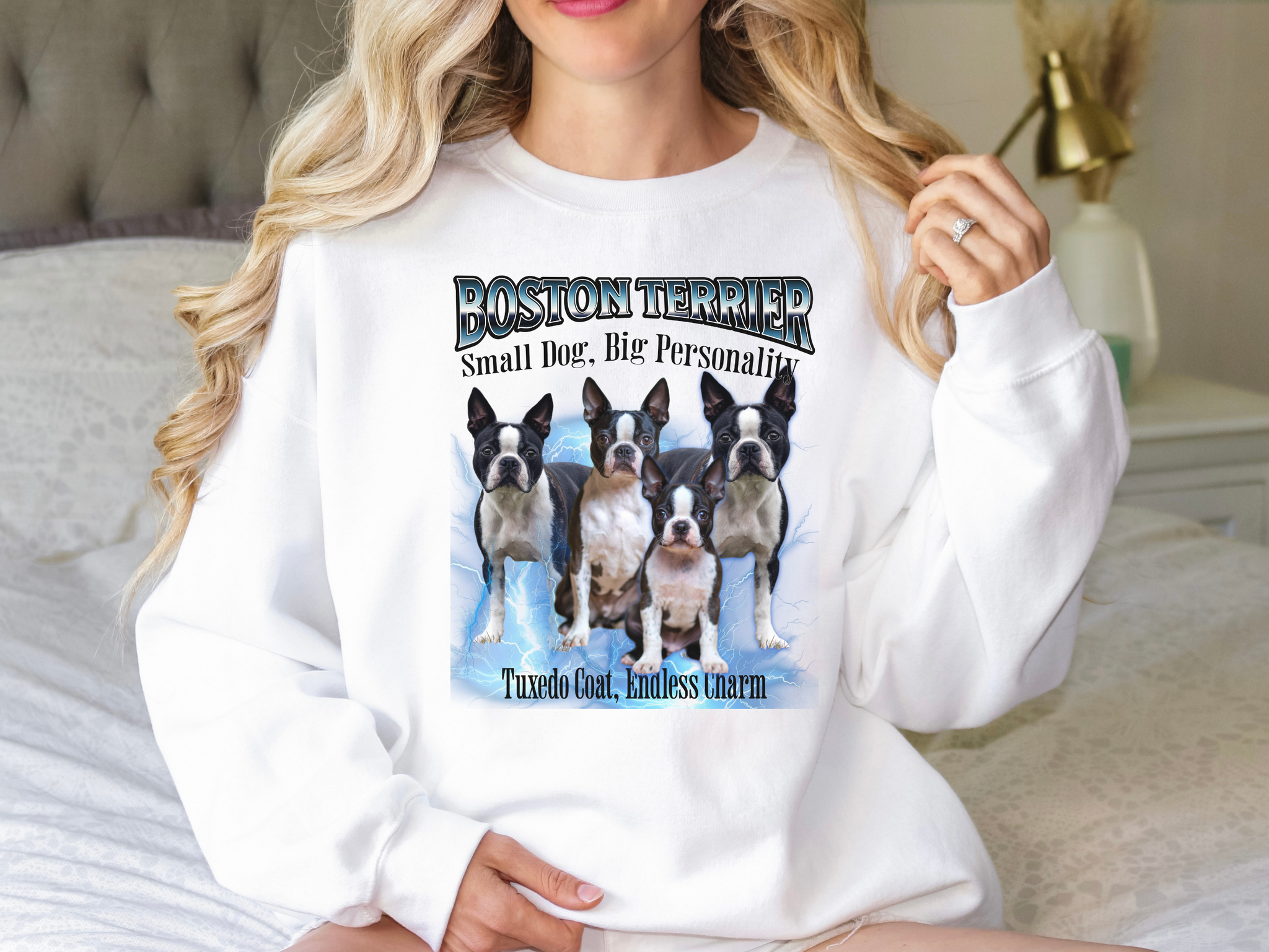 Compact in size but overflowing with charm, the Boston Terrier is affectionately known as the "American Gentleman." This Unisex Bootleg Collage Sweatshirt celebrates the breed's spirited personality with a vintage-inspired design that captures their distinctive tuxedo-like markings and endearing expression.