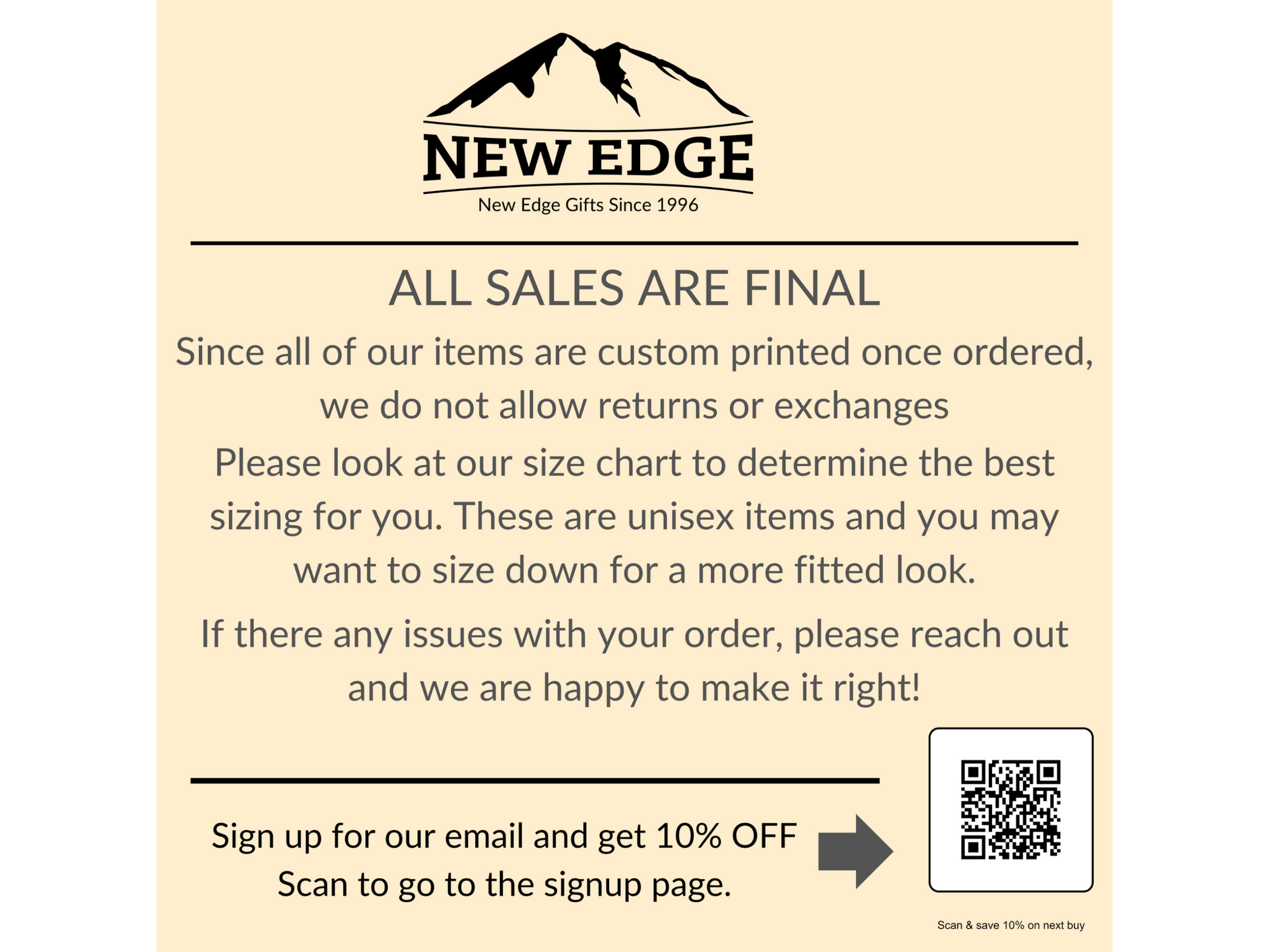 Since each sweatshirt is custom printed just for you, we are unable to accept returns or exchanges due to sizing. However, if you experience any issues with your order, simply send us a message, and we’ll gladly provide a replacement.