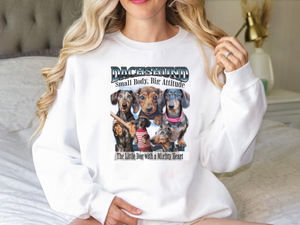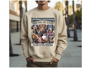 Short legs, long body, and a personality that fills the room — the Dachshund is a little dog with a big presence. This Unisex Bootleg Collage Sweatshirt captures the essence of the breed with a vintage-inspired design that showcases their spunky spirit and undeniable charm.