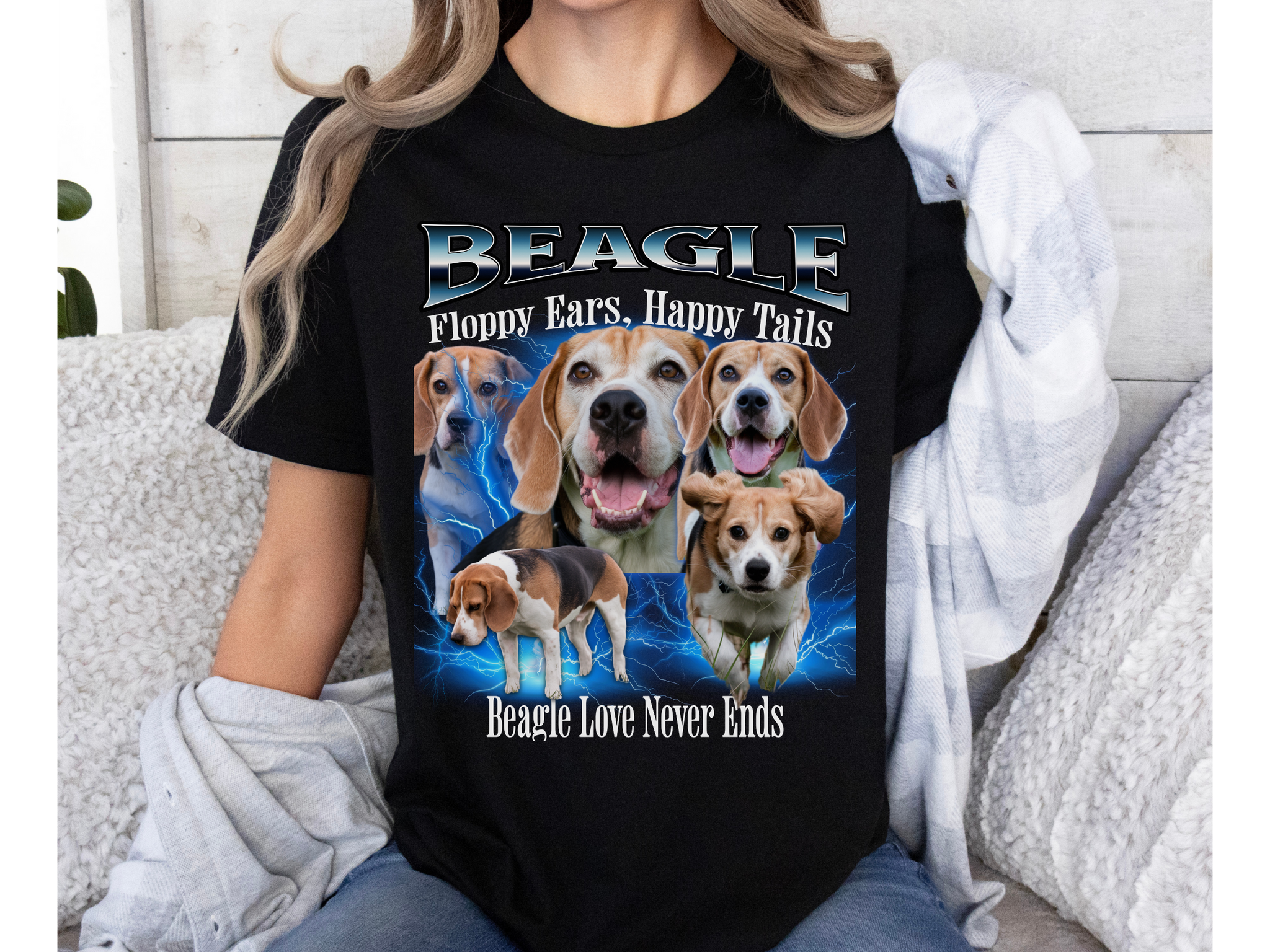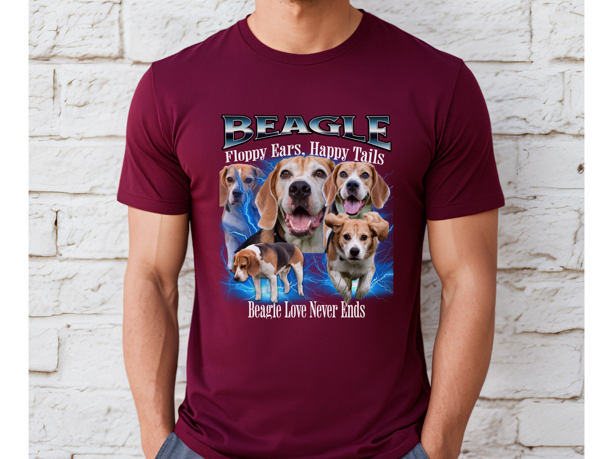 Celebrate your love for dogs in retro style with this Unisex Beagle Dog Bootleg Collage T-Shirt! Featuring a vibrant, eye-catching bootleg collage of adorable beagles with floppy ears and wagging tails, this tee is perfect for dog lovers who appreciate quirky fashion and canine charm.