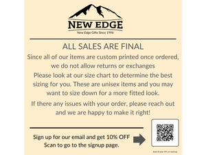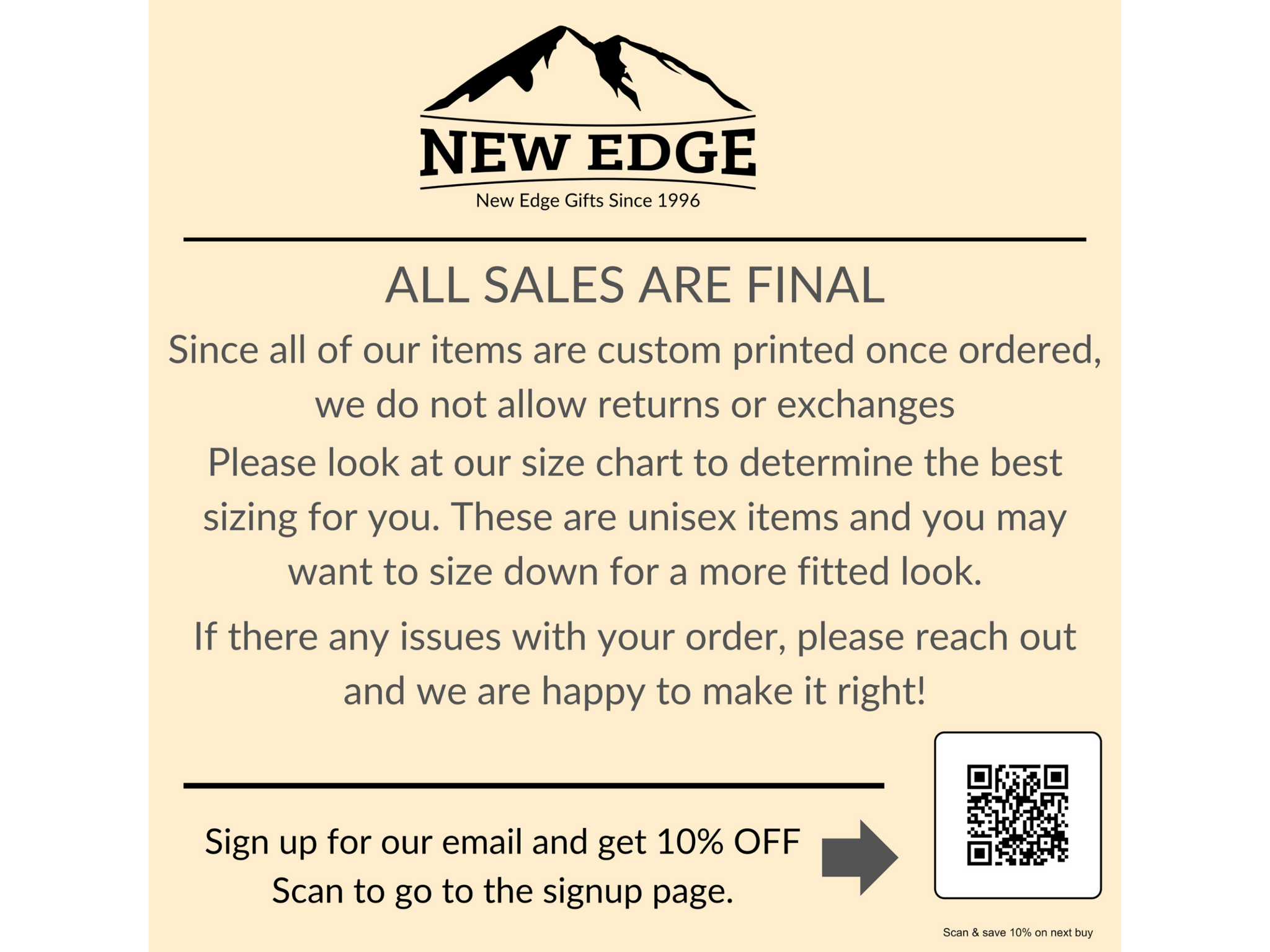 Since each shirt is custom printed just for you, we are unable to accept returns or exchanges for sizing issues. However, if there’s any issue with your order, simply message us, and we’ll make it right with a replacement.