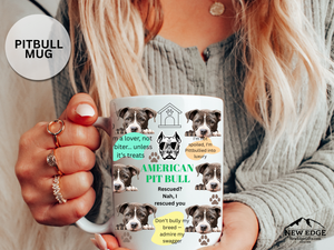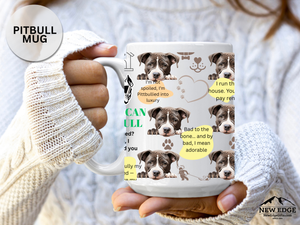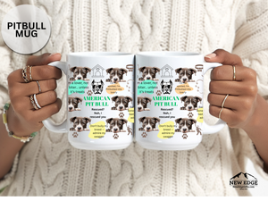 Start your day with tail-wagging laughter! This 15 oz ceramic mug features an adorable American Pit-Bulldog with a trendy wavy blob background and a funny, pun-filled quote that dog lovers will totally relate to. Whether you're sipping coffee, tea, or pup-approved hot cocoa, this mug is perfect for any proud pit parent.