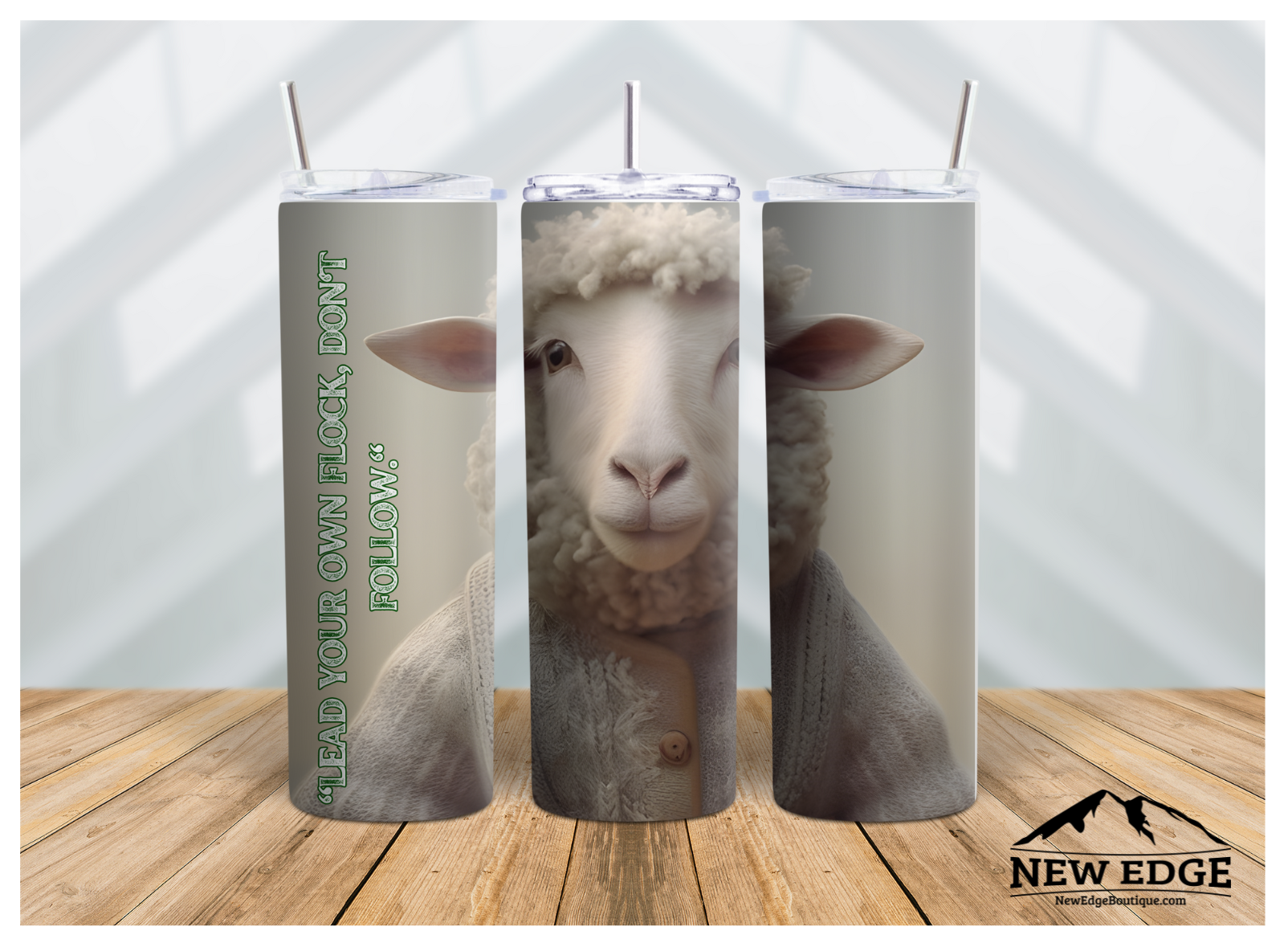 ntroducing the NEW EDGE 20 oz Domestic Animal Skinny Tumbler, a powerful symbol of leadership and individuality, emblazoned with the motivating slogan, "Lead your own flock, don't follow." This tumbler is not just a container for your beverages; it's a daily reminder to chart your own path and blaze a trail of your own making.