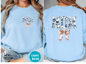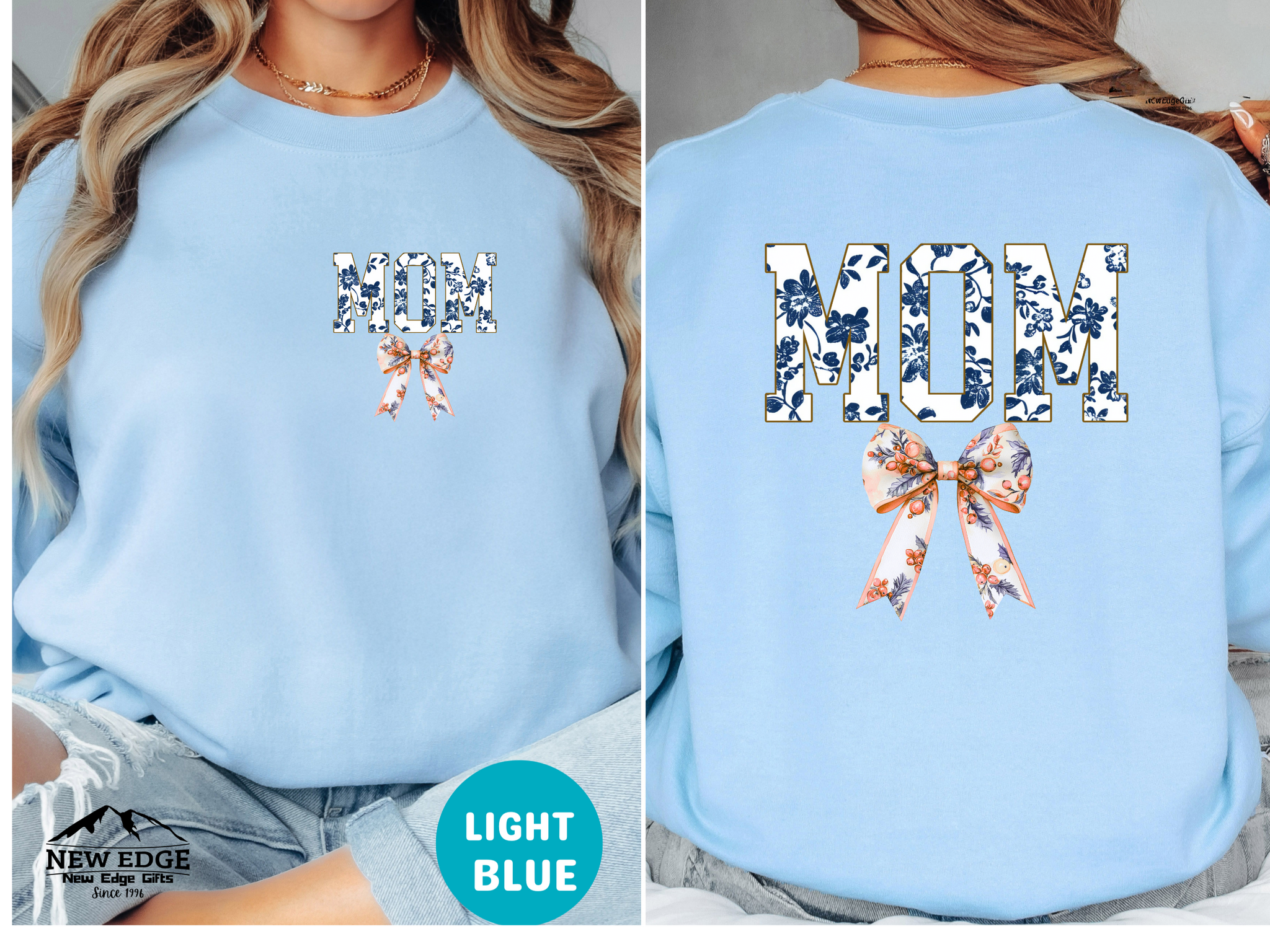Add a touch of feminine charm to your wardrobe with our Floral Coquette Bow MOM Sweatshirt, featuring a stunning blue and white floral bow printed on both the front and back. Designed for style and comfort, this sweatshirt blends the soft coquette aesthetic with cozy everyday wear, making it perfect for moms who love to look cute and feel comfortable.