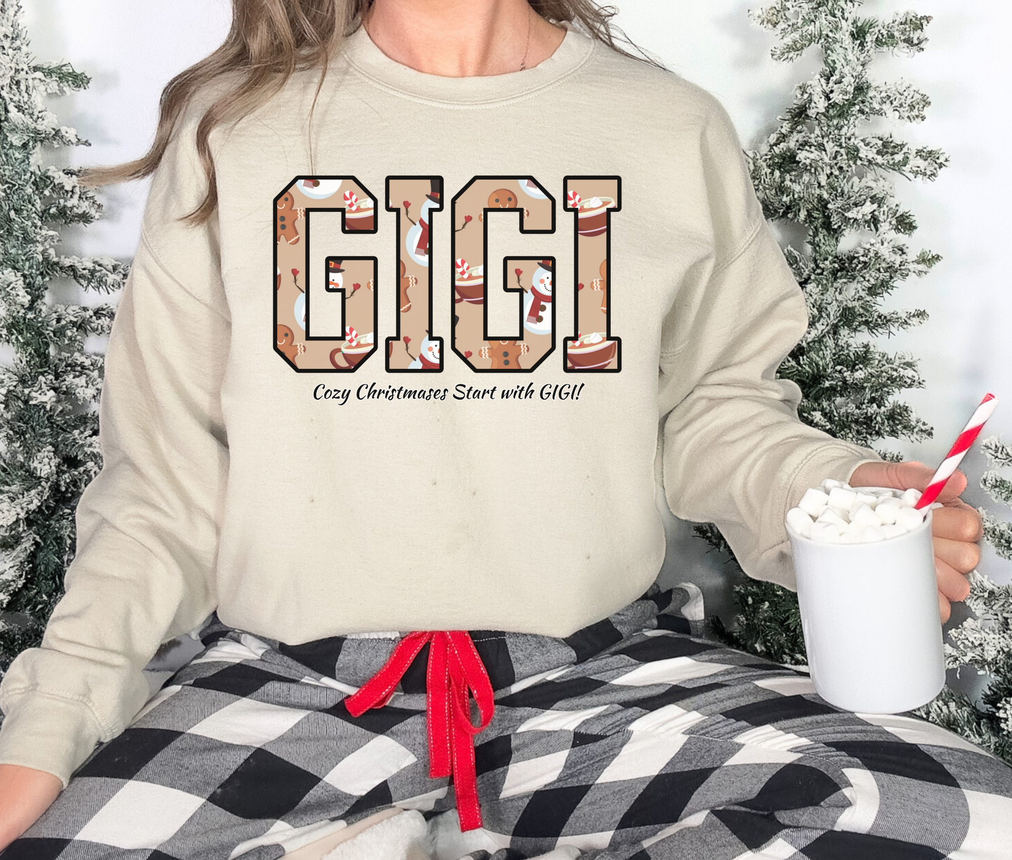 Gigi Christmas Sweatshirt with Slogan | “Cozy Christmas Starts with Gigi” Holiday Crewneck | Festive Grandma Pullover