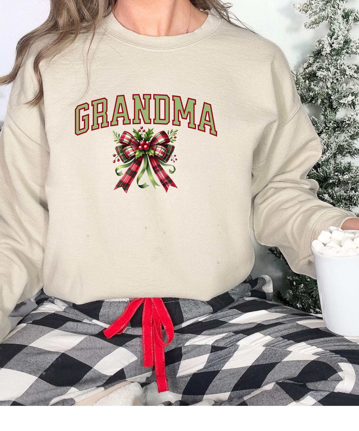 Celebrate the holiday season in style with this Grandma Christmas Sweatshirt featuring a festive bow design. Perfect for family gatherings, holiday photos, or cozy winter days at home, this crewneck combines warmth, comfort, and holiday charm. Made from a soft, durable fabric blend and designed with a relaxed unisex fit, it’s an ideal gift for grandmas who love Christmas and cozy fashion.