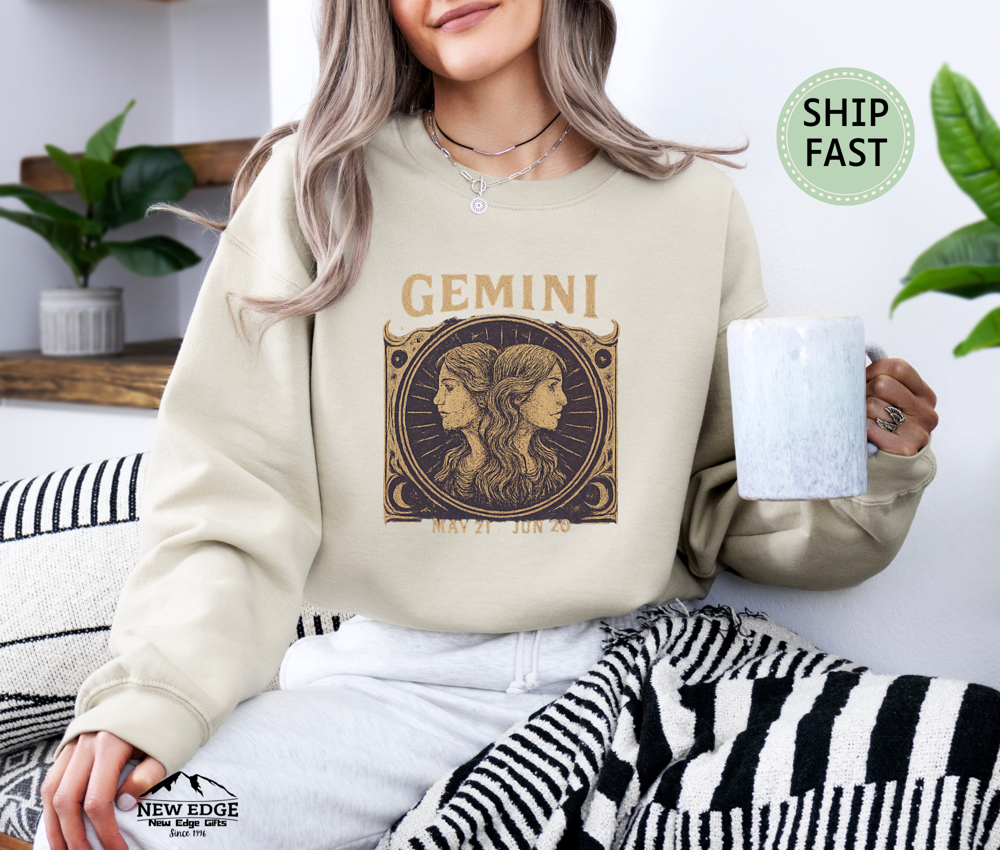 Express your dual nature with this Gemini Zodiac Sweatshirt. Designed for astrology lovers, this cozy unisex crewneck blends comfort and cosmic style. Perfect for stargazers, horoscope fans, or those proud of their Gemini sign. A thoughtful gift for birthdays and celestial celebrations from New Edge Gifts & Novelties.