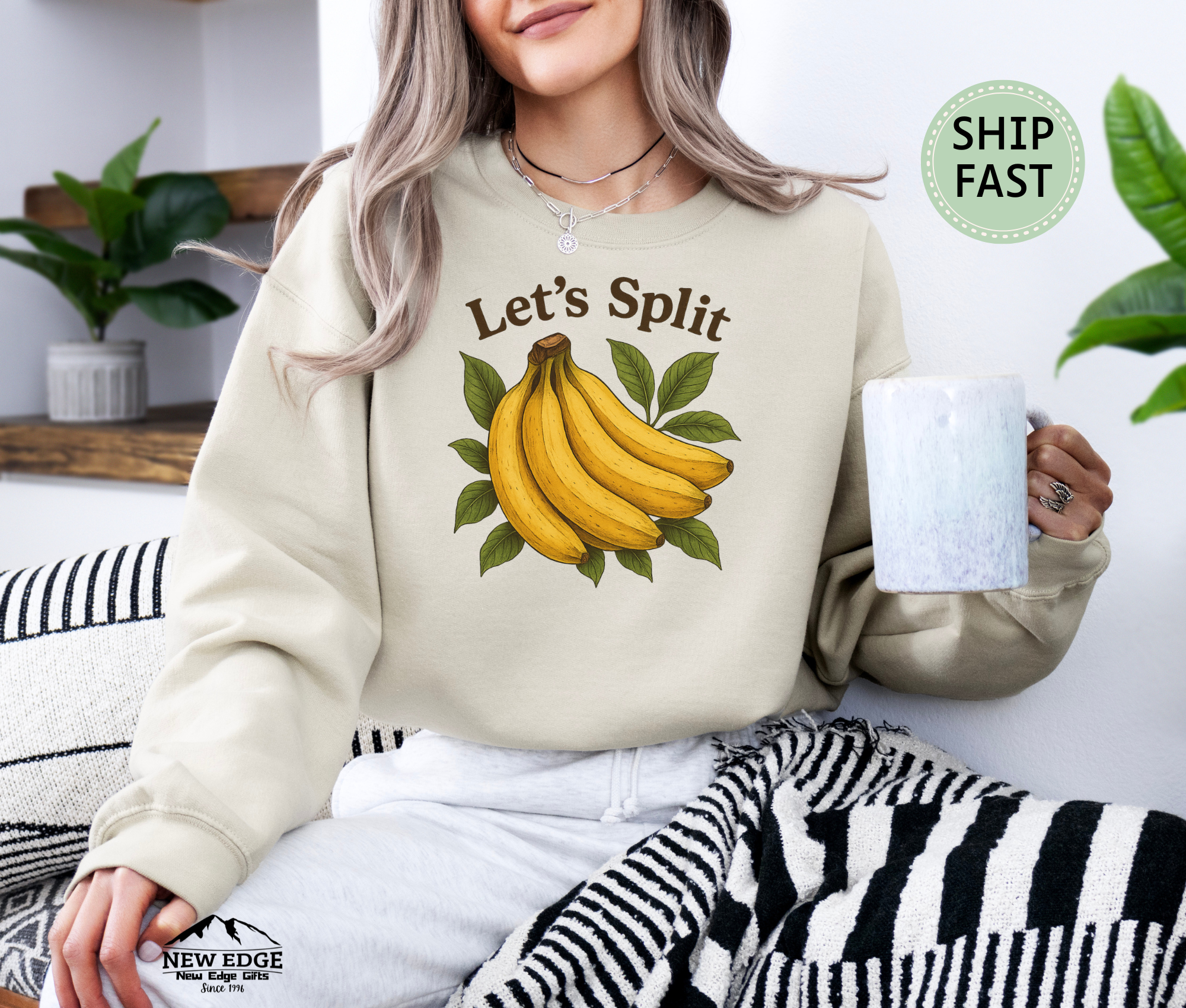 Add a playful twist to your wardrobe with this "Let’s Split Banana" sweatshirt. Featuring a lighthearted fruit pun, this cozy pullover is perfect for pun lovers, foodies, or anyone who enjoys a splash of humor in their style. Soft, durable, and comfy—ideal for casual outings or lounging in style. A great gift for friends who love a good laugh!