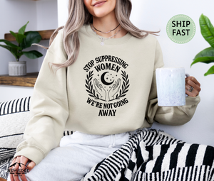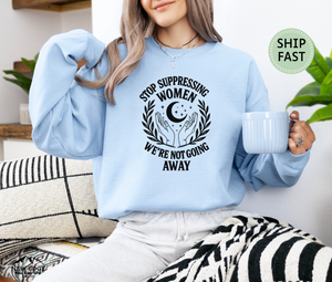 Make a statement with this “Stop Suppressing Women, We’re Not Going Away” unisex sweatshirt. Perfect for activists, feminists, and allies, this cozy pullover blends comfort with empowerment. Ideal for protests, rallies, or everyday wear, it’s a powerful way to show solidarity and strength.