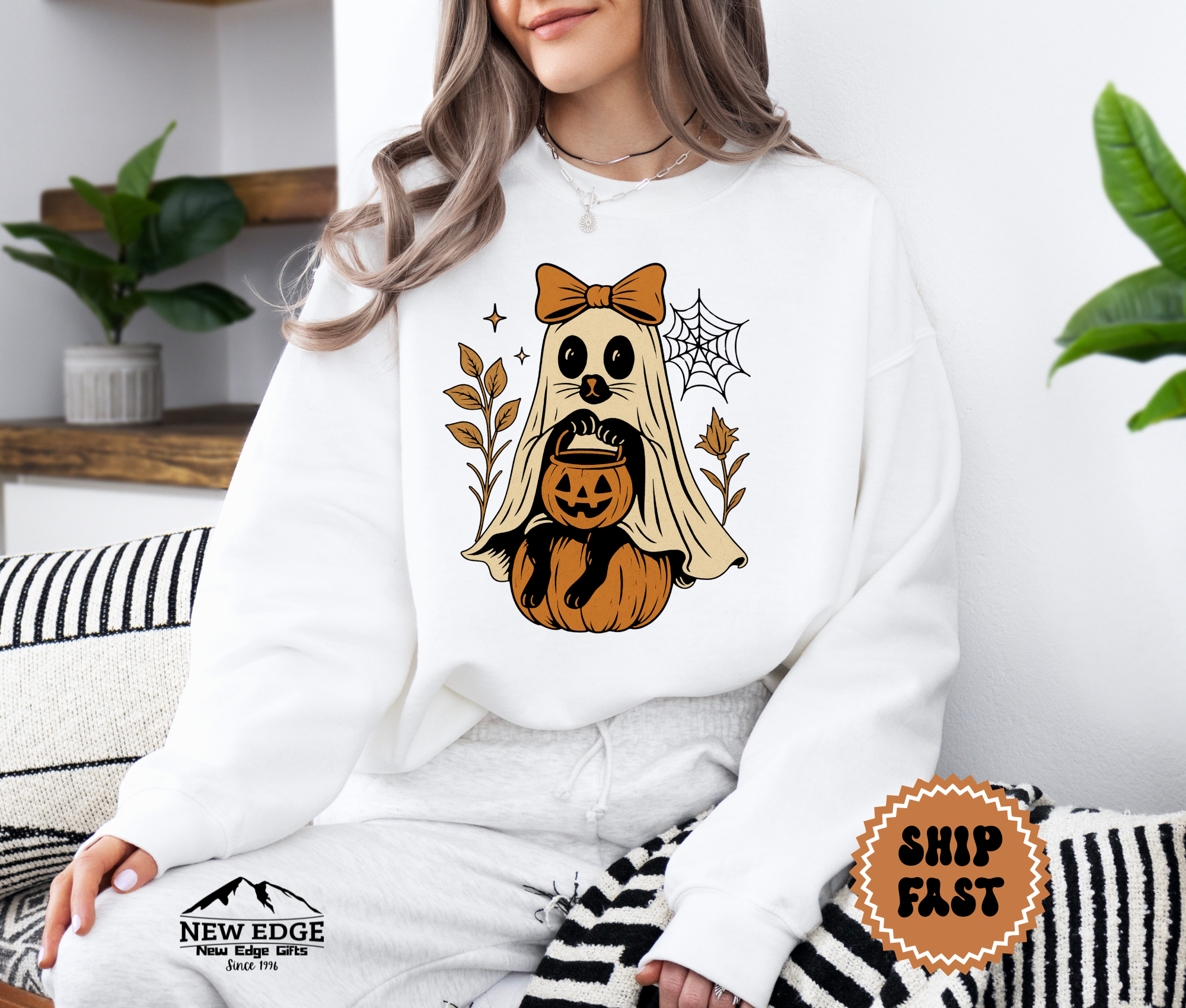 from $31.82 USDUnisex Ghost and Cat Halloween Sweatshirt | Spooky Cat Lover Pullover | Cozy Fall & Halloween Crewneck