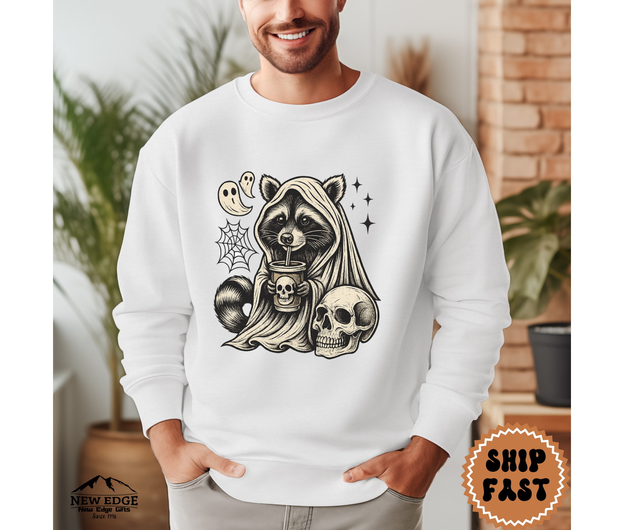 from $31.82 USDUnisex Raccoon Ghost Halloween Sweatshirt – Cute Spooky Forest Creature Cozy Fall Pullover