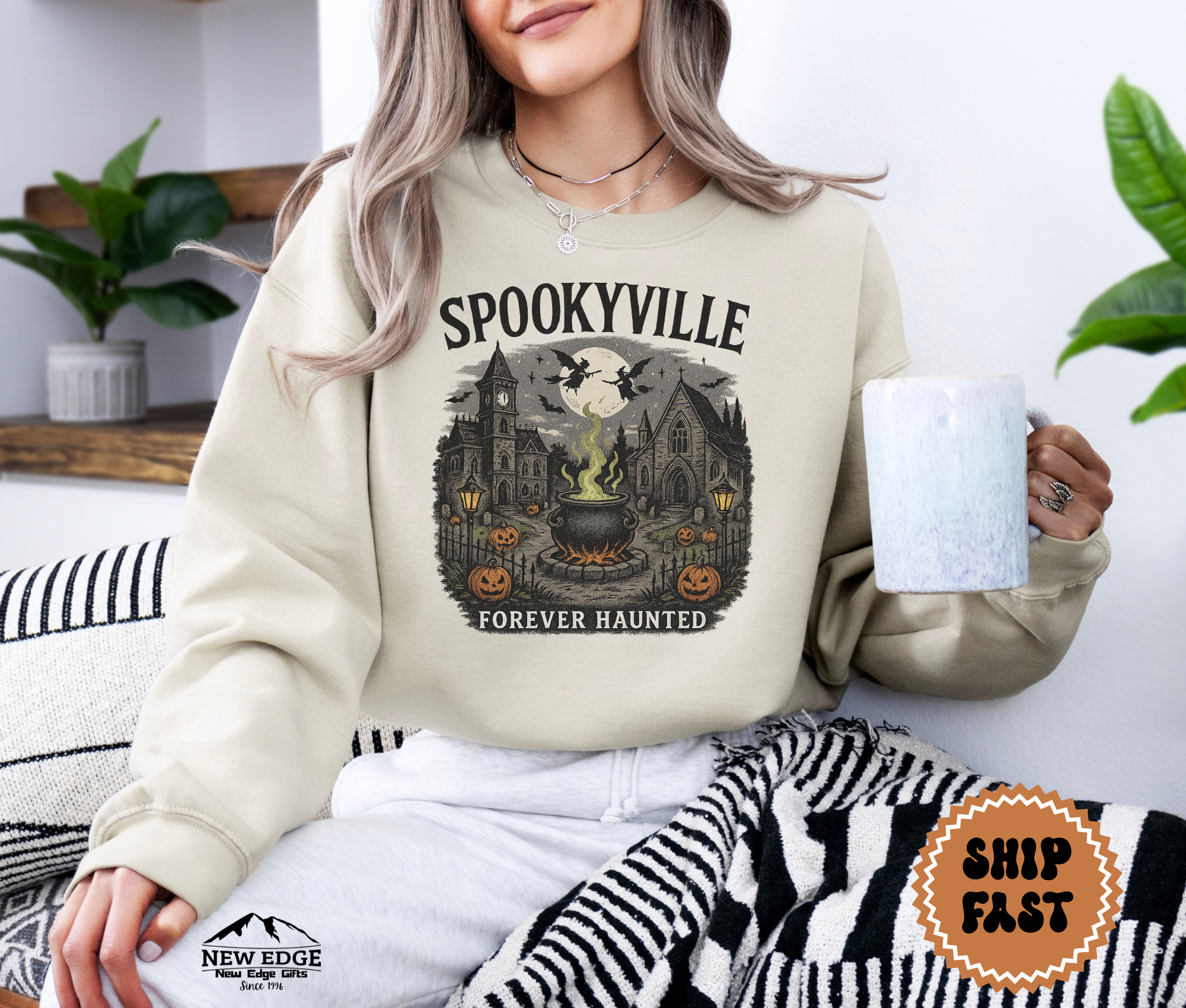 from $31.82 USDUnisex Spookyville “Forever Haunted” Halloween Sweatshirt | Gothic Haunted Pullover | Cozy Spooky Season Crewneck