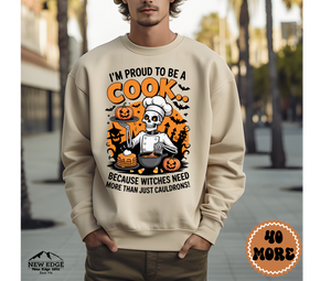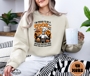 Unisex Halloween Cook Sweatshirt – “I’m Proud to be a Cook… Because Witches Need More Than Just Cauldrons” Funny Profession Crewneck