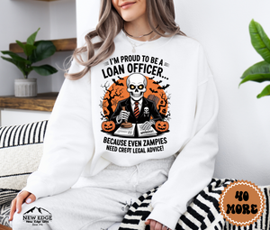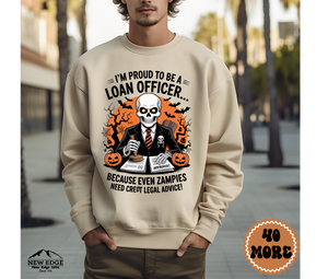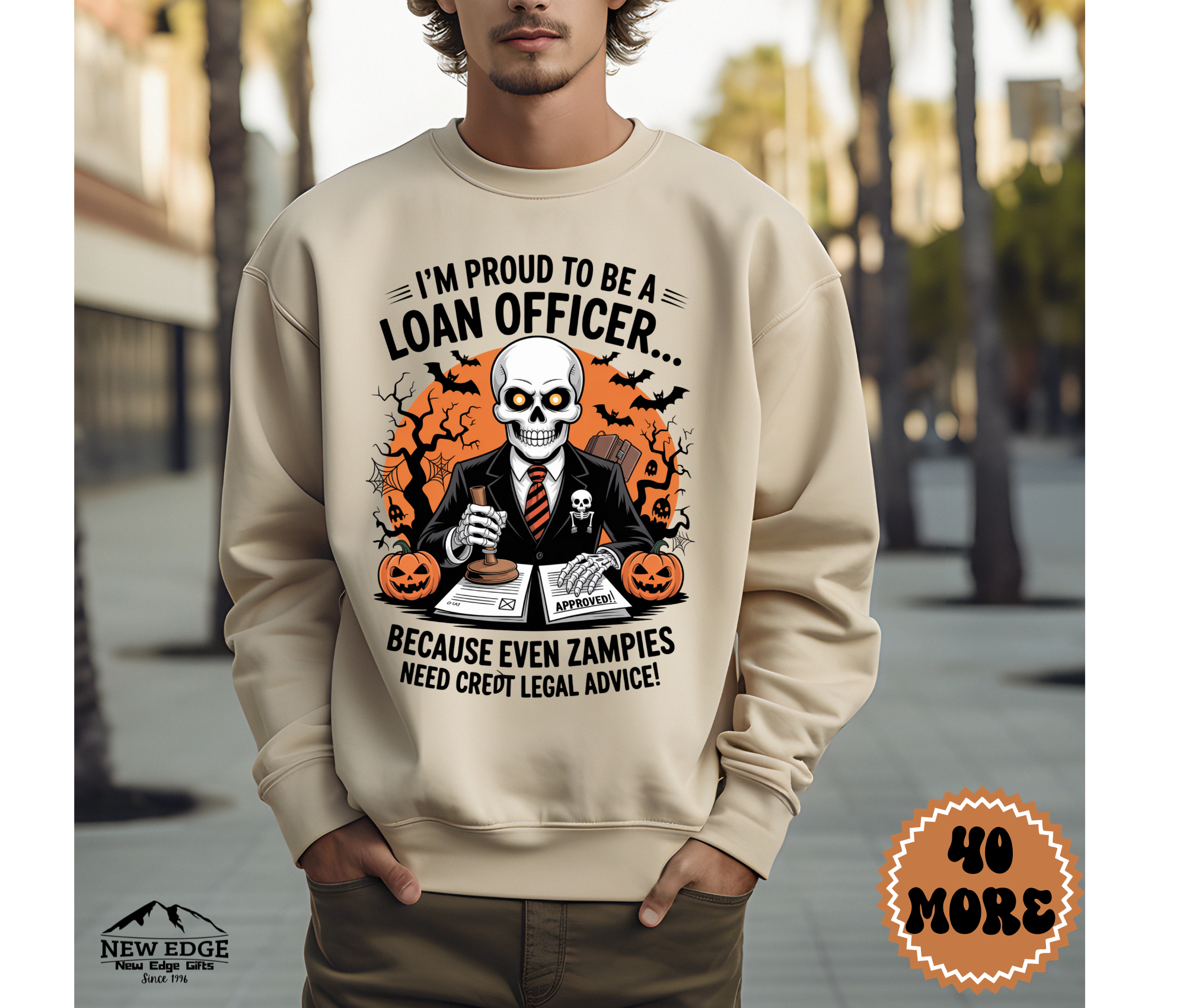Add some spooky fun to your finance pride this Halloween! 🧟♂️💳 This unisex Halloween Loan Officer Sweatshirt features the clever slogan “I’m Proud to be a Loan Officer… Because Even Zombies Need Credit Approval!” Perfect for loan officers, bankers, mortgage specialists, and finance professionals who enjoy mixing humor with their career. Made with soft, cozy fabric, this crewneck is great for the office, casual wear, or Halloween parties. A fun and unique gift idea for loan officers who want to celebrate the season with style and laughter.