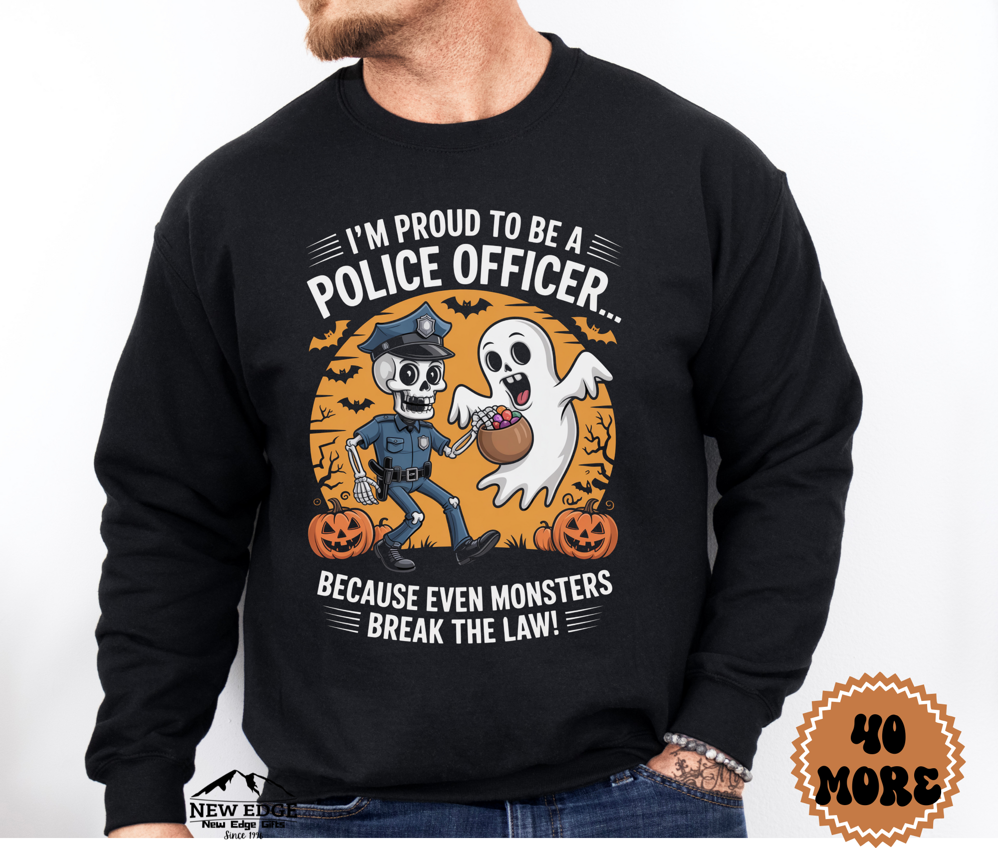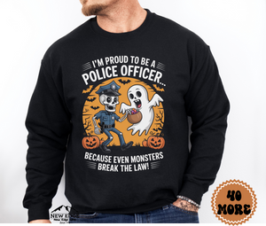 Proud to Be a Police Officer Halloween Sweatshirt – “Because Even Monsters Break the Law!” | Unisex Costume & Career Pride Crewneck