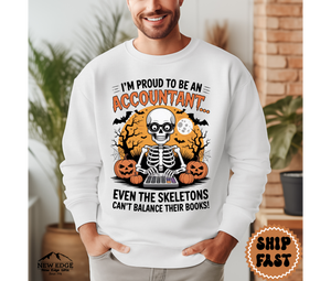 Add some financial humor to your Halloween wardrobe with this "I’M Proud to be an Accountant… Because Even Skeletons Can’t Balance Their Books" Unisex Sweatshirt. Perfect for accountants, bookkeepers, finance students, or anyone who works with numbers, this crewneck blends professional pride with a spooky seasonal twist.