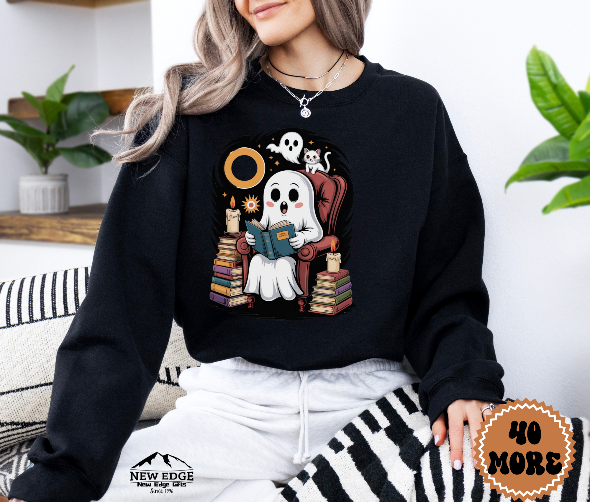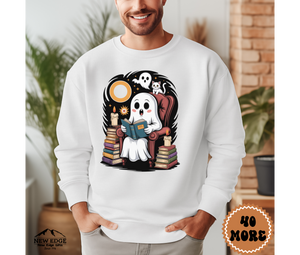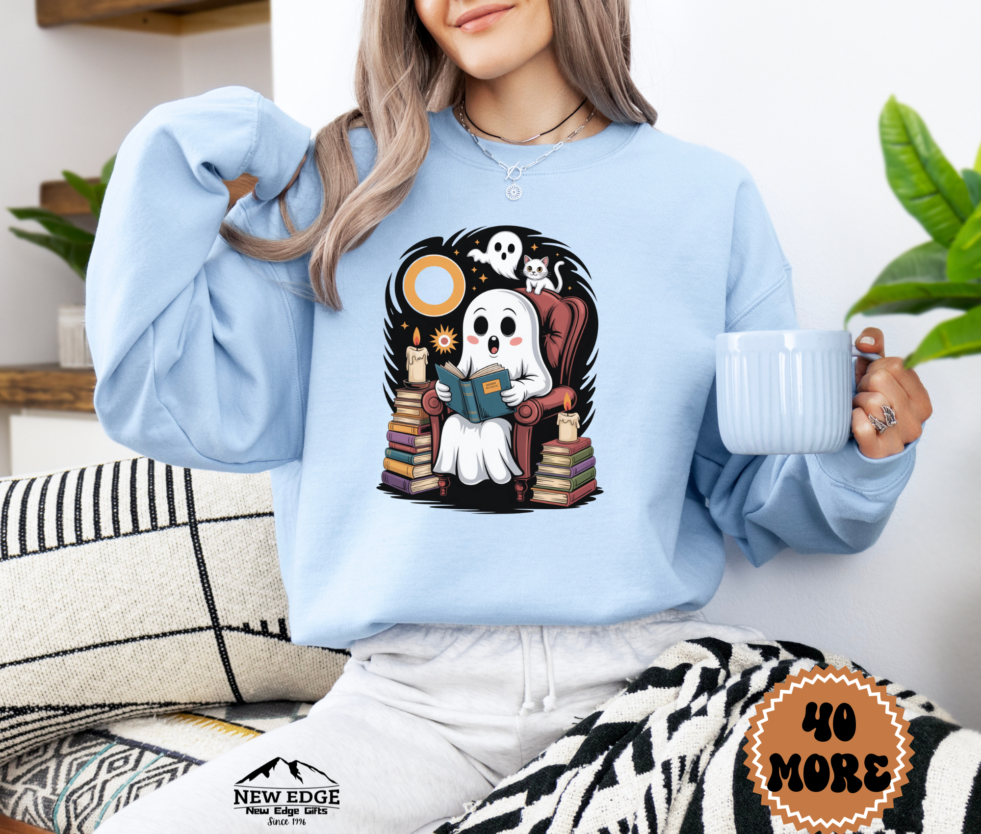 Unisex Ghost Reading Book Halloween Sweatshirt | Spooky Book Lover Pullover | Cozy Fall Gothic Crewneck