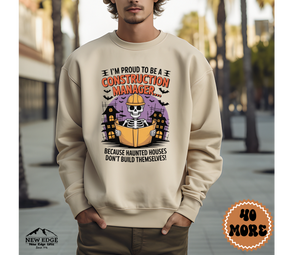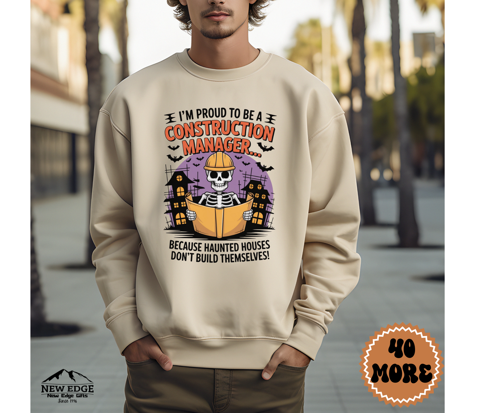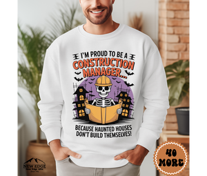 Build your Halloween spirit with humor and pride! 🏗️🎃 This unisex Halloween Construction Manager Sweatshirt showcases the witty slogan “I’m Proud to be a Construction Manager… Because Haunted Houses Don’t Build Themselves.” Perfect for construction managers, project leaders, engineers, and anyone who loves mixing spooky fun with their profession. Made with cozy, durable fabric, this crewneck is ideal for work sites, Halloween parties, or casual wear all season long. A clever and unique gift for construction professionals who enjoy a laugh while celebrating spooky season.