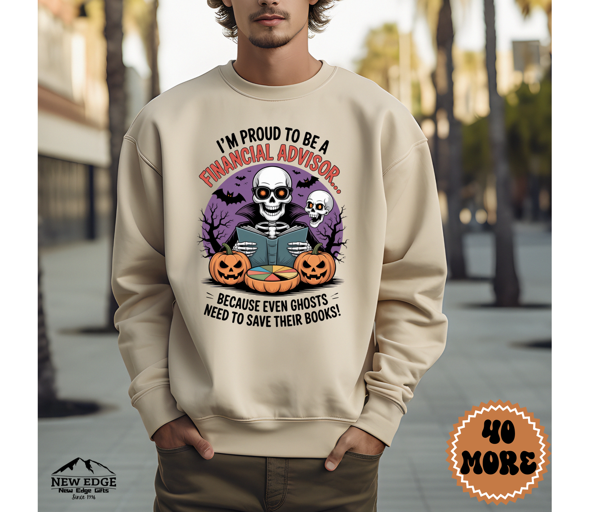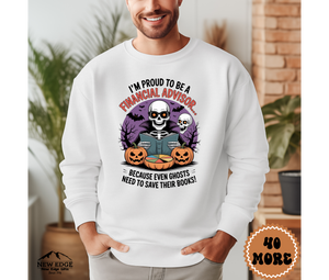 Add some spooky fun to your financial pride this Halloween! 👻💼 This unisex Halloween Financial Advisor Sweatshirt features the witty slogan “I’m Proud to be a Financial Advisor Because Even Ghosts Need to Save Their Books.” Perfect for financial advisors, accountants, money managers, and anyone in the finance world who enjoys mixing humor with their profession. Made with soft, cozy fabric, this crewneck is ideal for office wear, Halloween parties, or casual outings all season long. A clever and unique gift for finance professionals who love to celebrate spooky season in style.