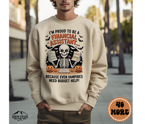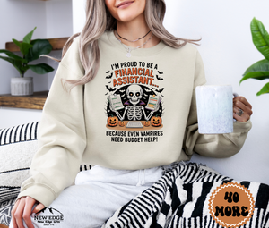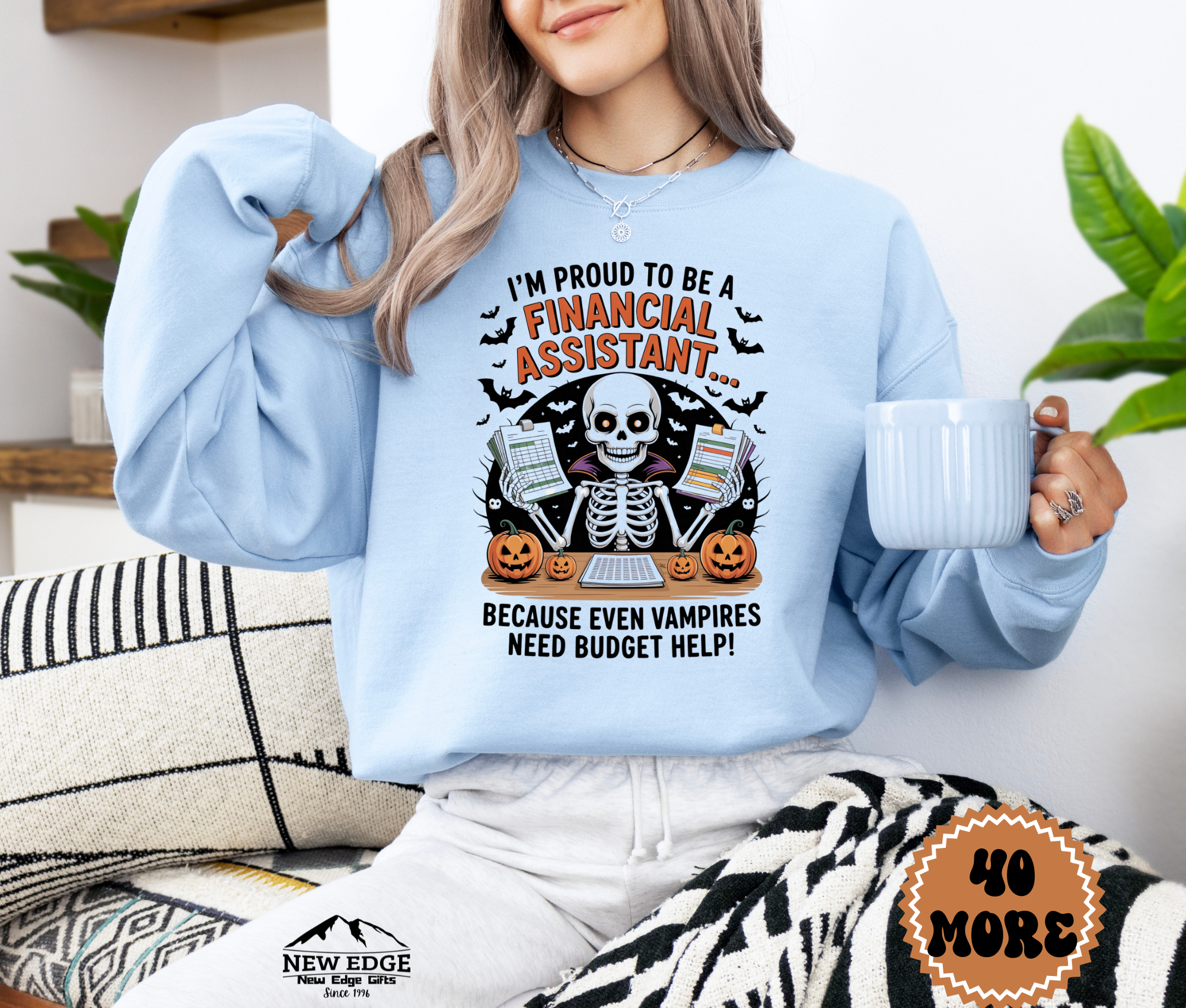 Bring a spooky sense of humor to your profession this Halloween! 🧛♂️💰 This unisex Halloween Financial Assistant Sweatshirt features the clever slogan “I’m Proud to be a Financial Assistant… Because Even Vampires Need Budget Help!” Perfect for financial assistants, office staff, and anyone who works with numbers while enjoying the Halloween season. Made with soft, cozy fabric, this crewneck is great for work, festive parties, or casual fall wear. A fun and unique gift idea for finance professionals who want to show their pride with a touch of Halloween magic.