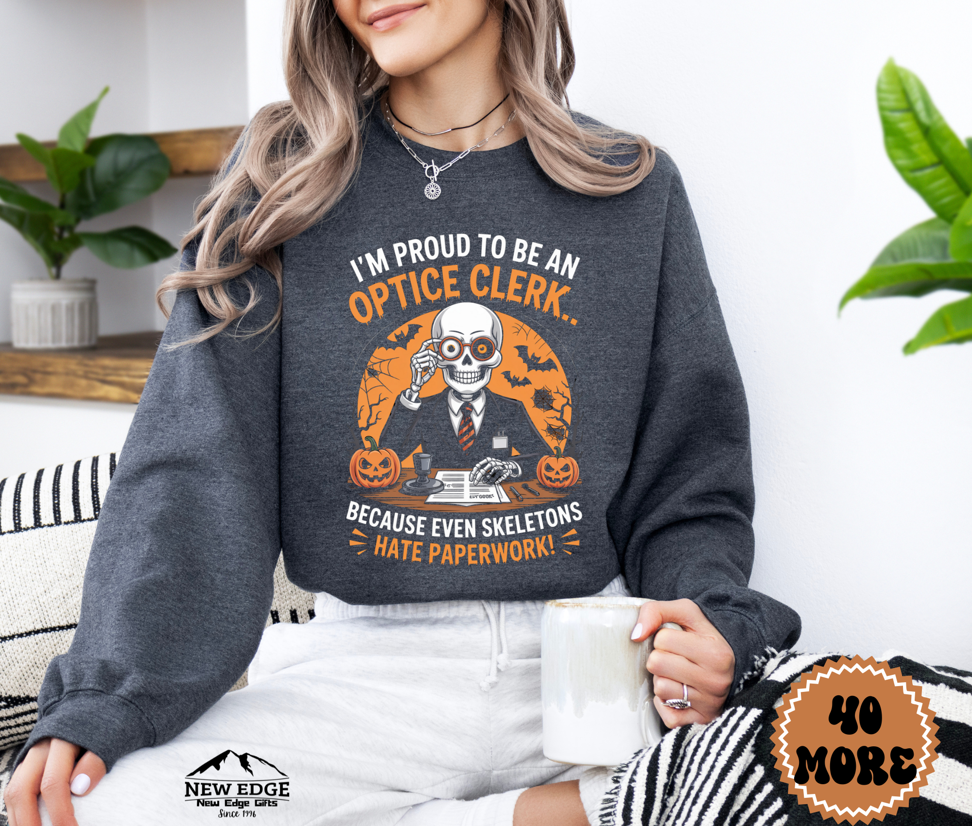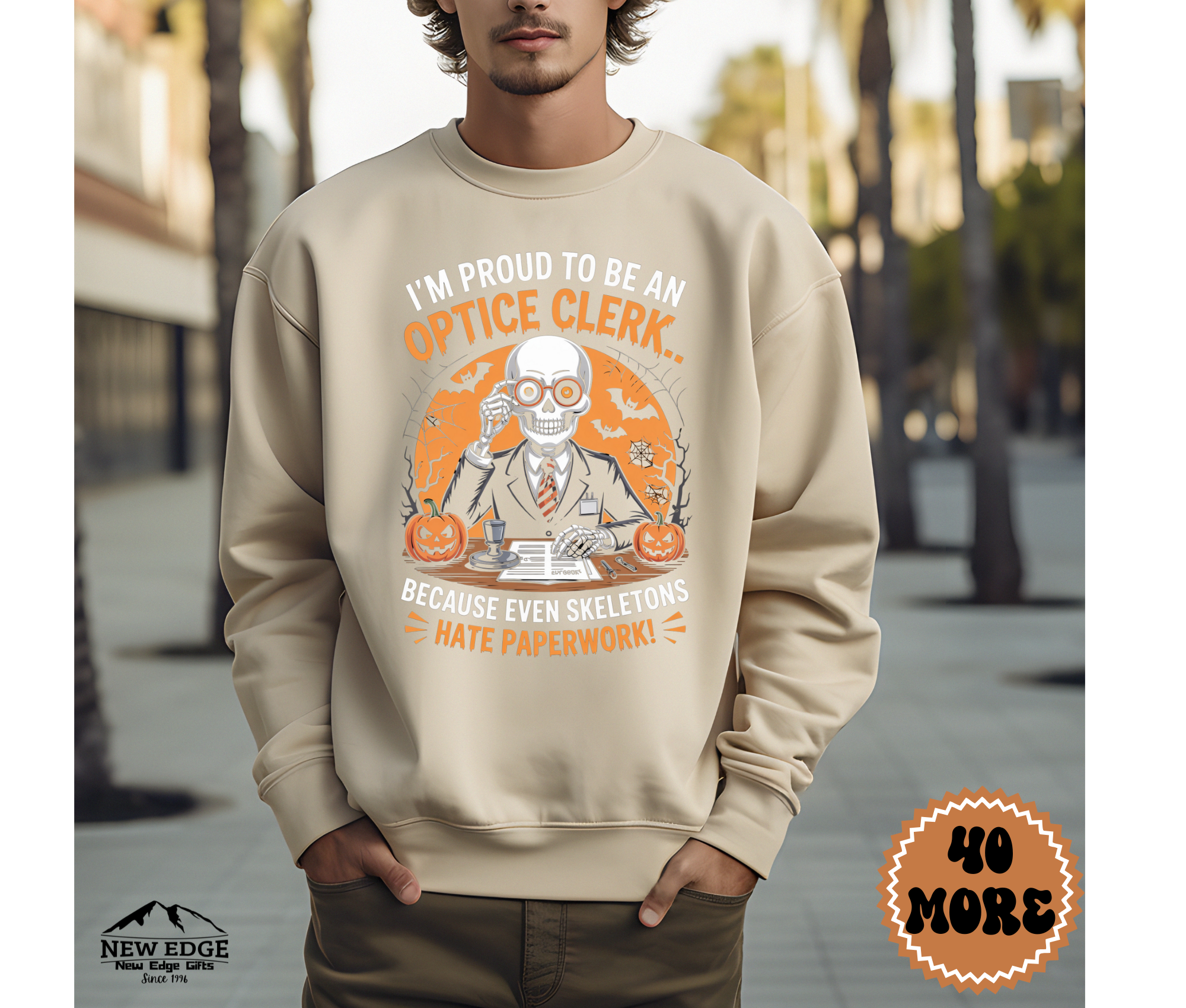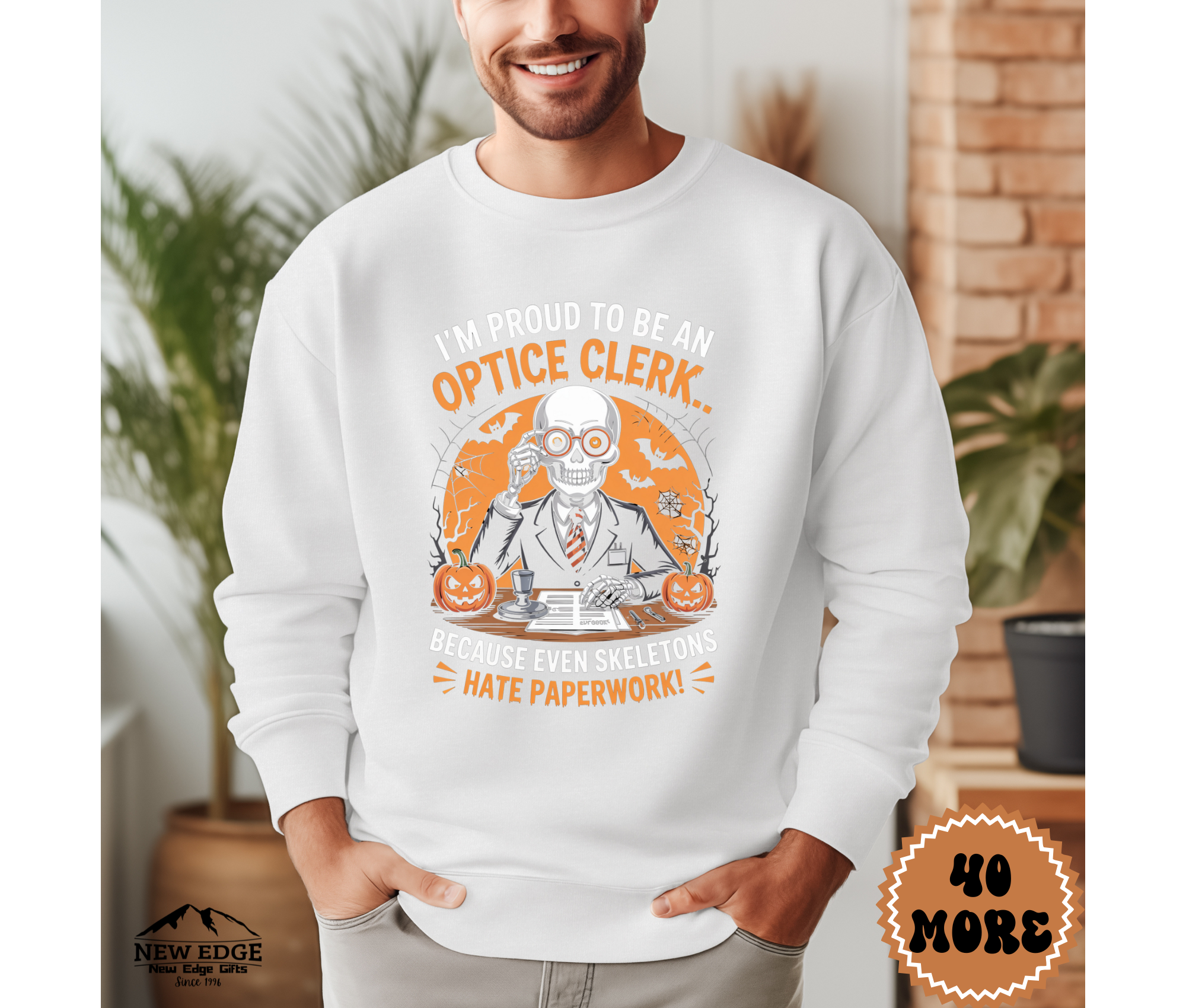 Unisex Halloween Optician Sweatshirt – “I’m Proud to be an Optician… Because Even Ghosts Need New Specs” Funny Profession Crewneck