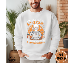 See spooky season more clearly with this funny profession sweatshirt! 👓👻 This unisex Halloween Optician Sweatshirt features the witty slogan “I’m Proud to be an Optician… Because Even Ghosts Need New Specs.” Perfect for opticians, eye care specialists, and anyone who works with eyewear while enjoying Halloween fun. Made from soft, cozy fabric, this crewneck is ideal for the optical shop, Halloween parties, or casual fall wear. A clever and unique gift for opticians who love their work and a little spooky humor.
