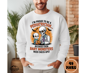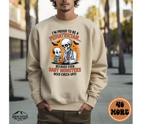 Celebrate spooky season with a dose of humor and healthcare pride! 🩺👶👻 This unisex Halloween Pediatrician Sweatshirt features the playful slogan “I’m Proud to be a Pediatrician… Because Even Baby Monsters Need Check-Ups.” Perfect for pediatricians, doctors, medical students, and healthcare professionals who care for little ones—even the spooky kind! Made with soft, cozy fabric, this crewneck is ideal for hospital shifts, Halloween parties, or casual fall wear. A thoughtful and funny gift for pediatricians who love their work and enjoy celebrating Halloween in style.