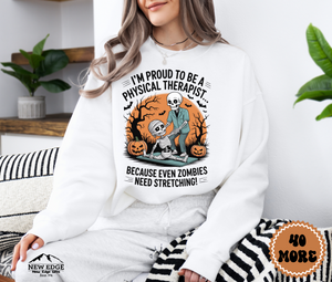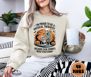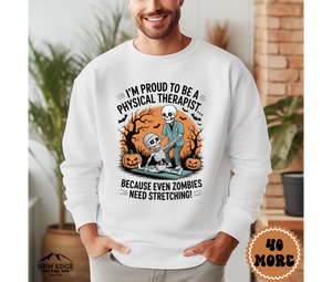 Unisex Halloween Sweatshirt - "I’m Proud to be a Physical Therapist… Because Even Zombies Need Stretching!"