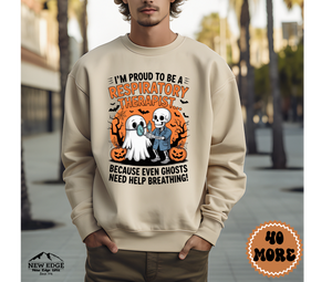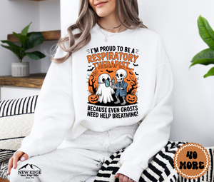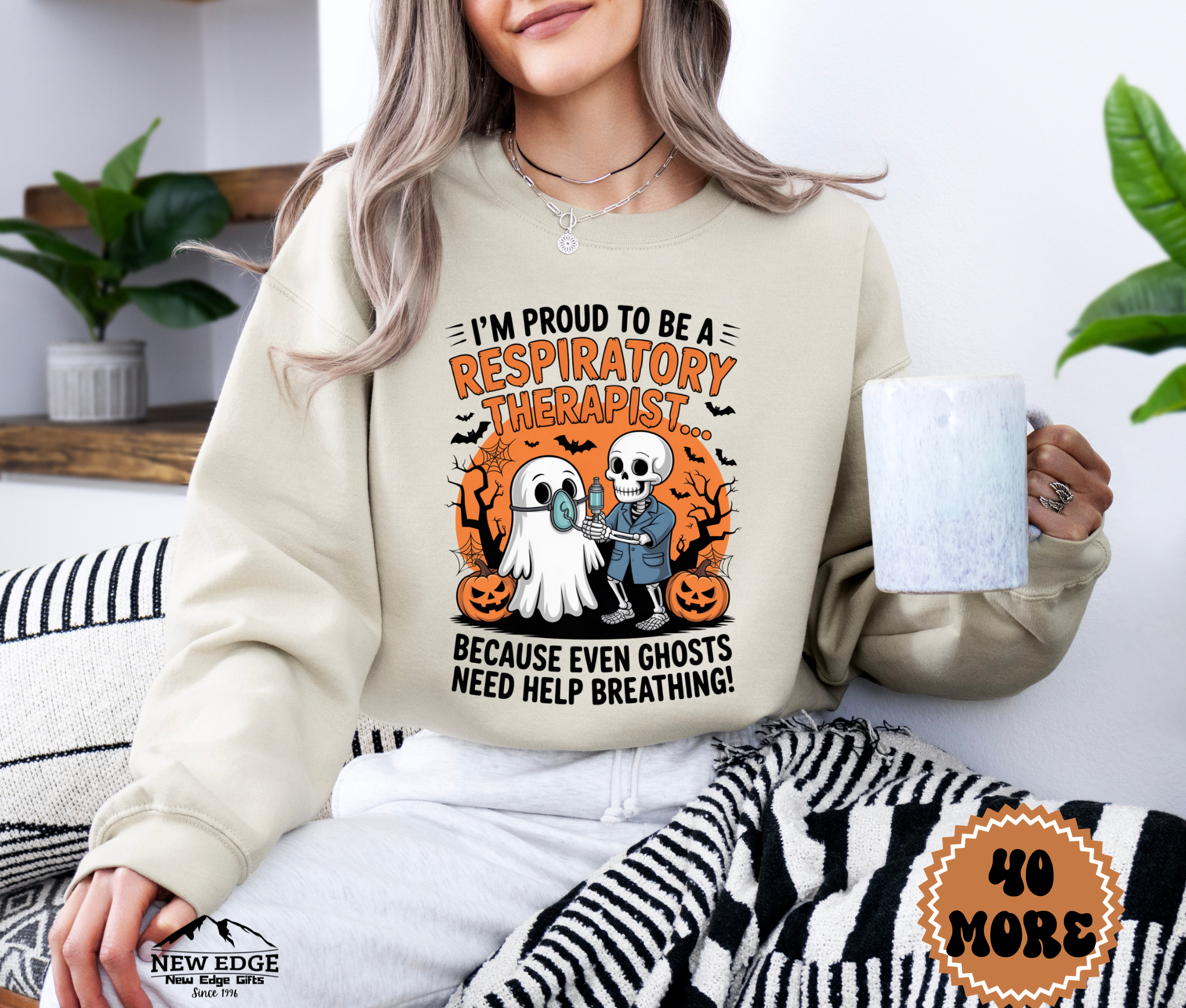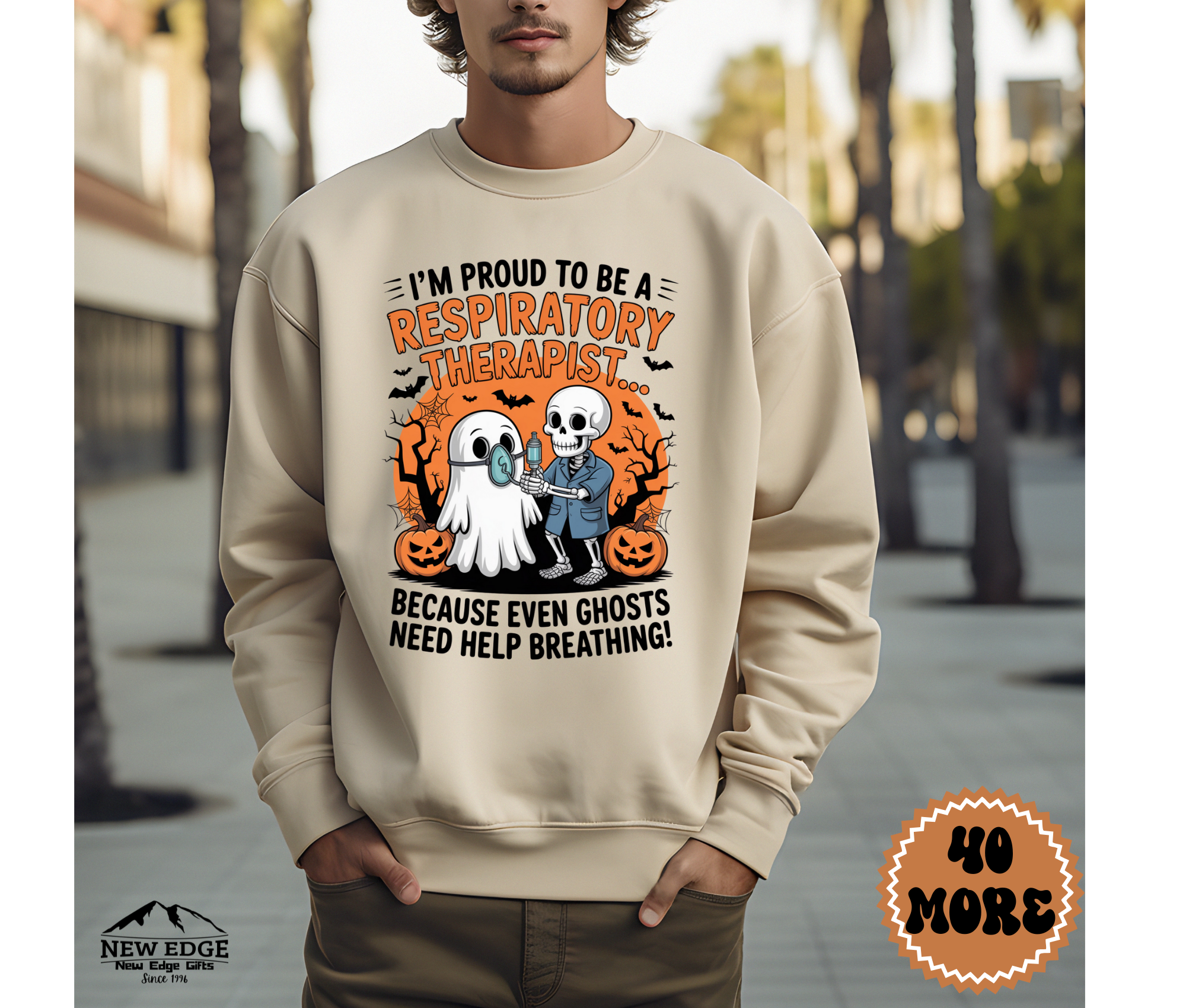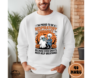 Unisex Halloween Sweatshirt - "I’m Proud to be a Respiratory Therapist… Because Even Ghosts Need Help Breathing!"