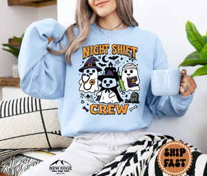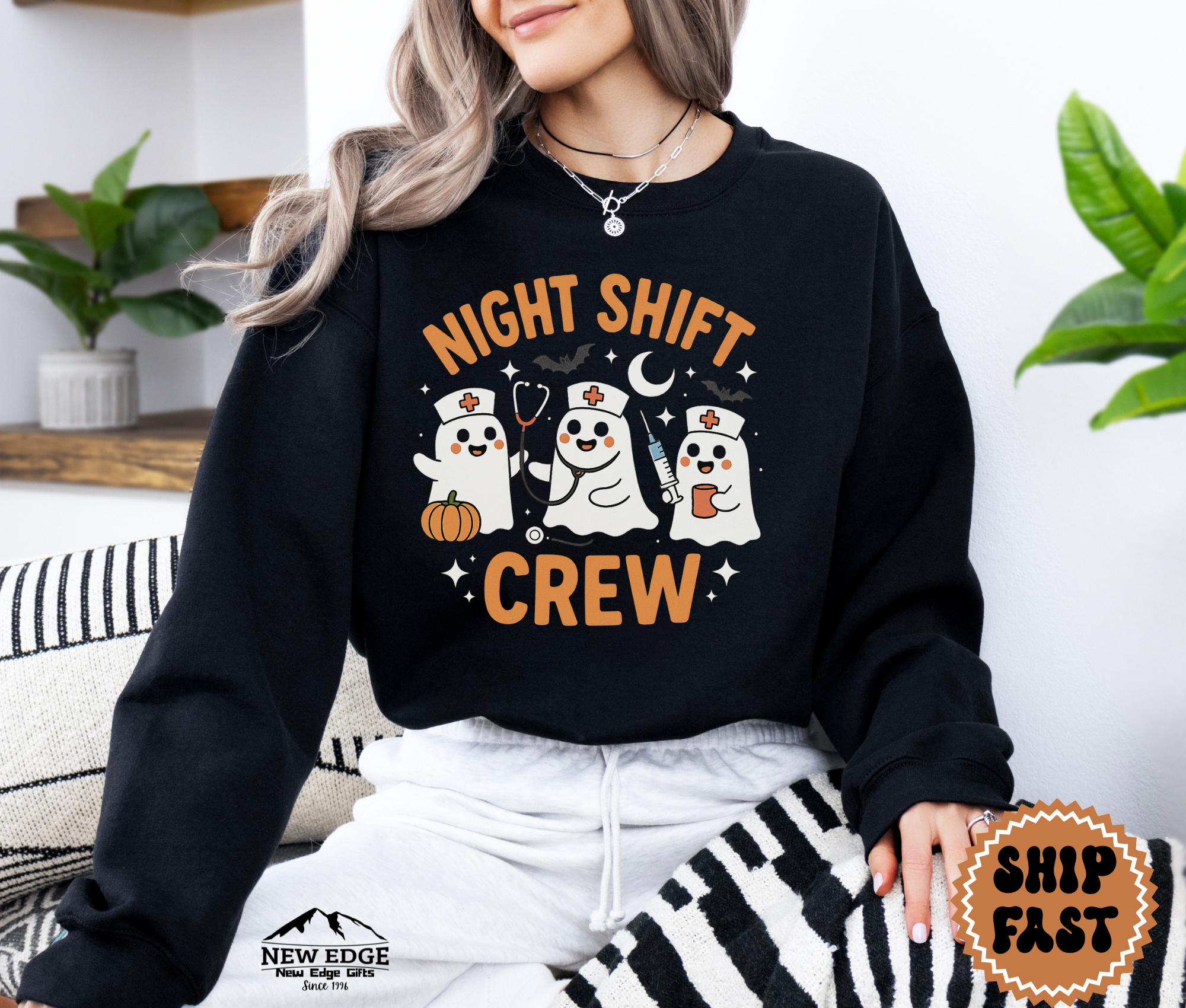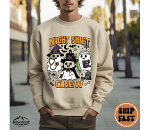 Unisex Nurse Night Shift Crew Halloween Sweatshirt | Funny Spooky Ghost Nurse Costume Top