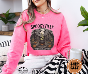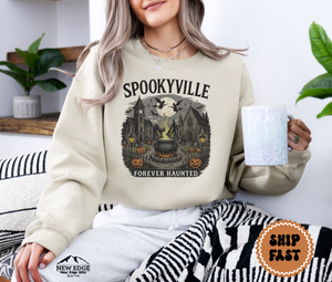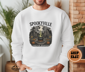 Step into the shadows of Spookyville with this “Forever Haunted” Halloween Sweatshirt 👻🎃. Perfect for anyone who loves gothic charm and eerie vibes, this unisex crewneck combines cozy comfort with a haunting design that stands out all spooky season long.