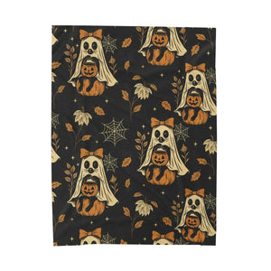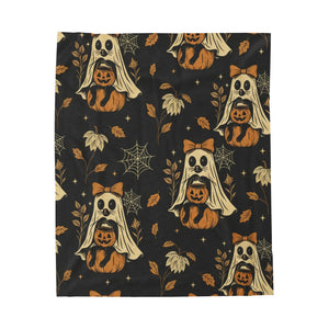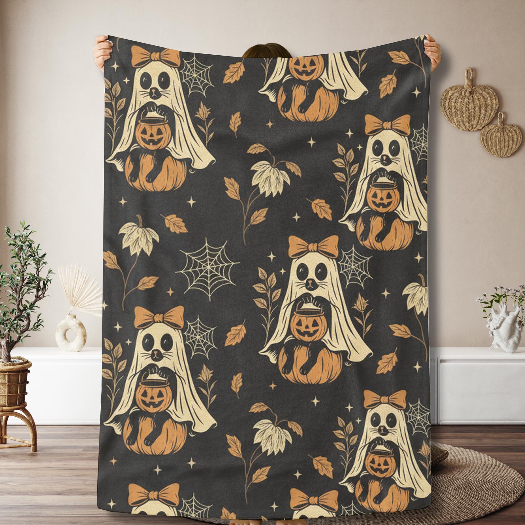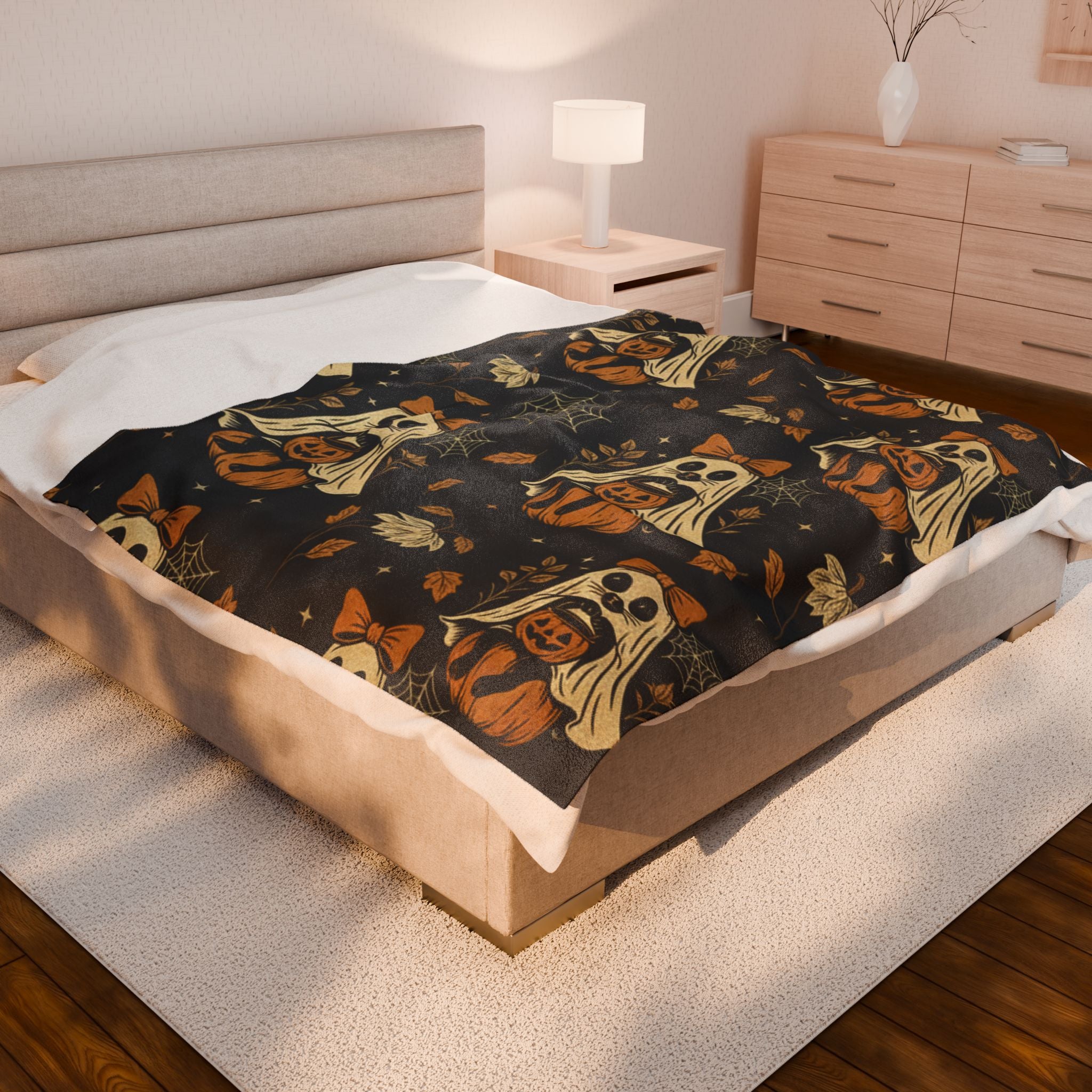 Velveteen Raccoon Ghost & Pumpkin Halloween Blanket – Soft Spooky Fall Throw