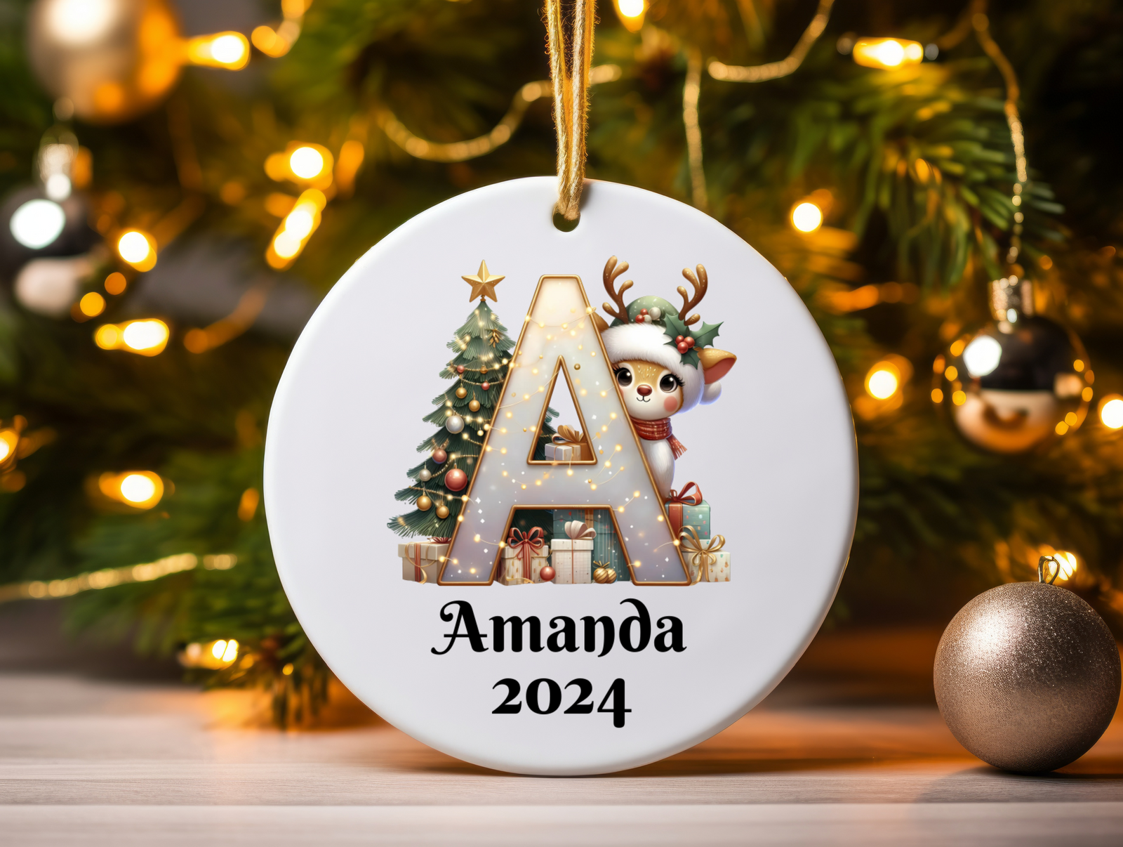 $14.99 USDPersonalized Letter Name Ornament – 2025 Christmas Family Keepsake, Custom Initial Holiday Tree Decoration