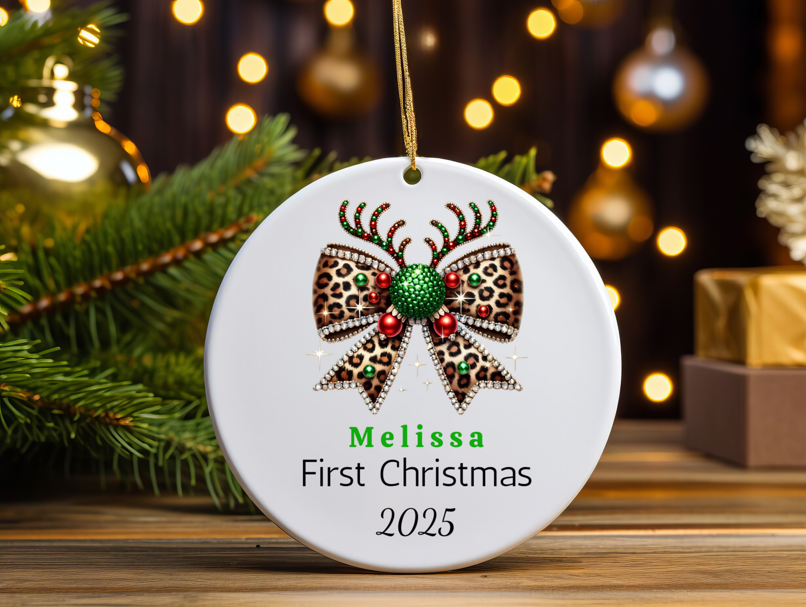 $9.66 USDFirst Christmas Ornament | Personalized Ornament | Baby Shower Gift | Bow Ornament Keepsake | Custom Family Name Decoration
