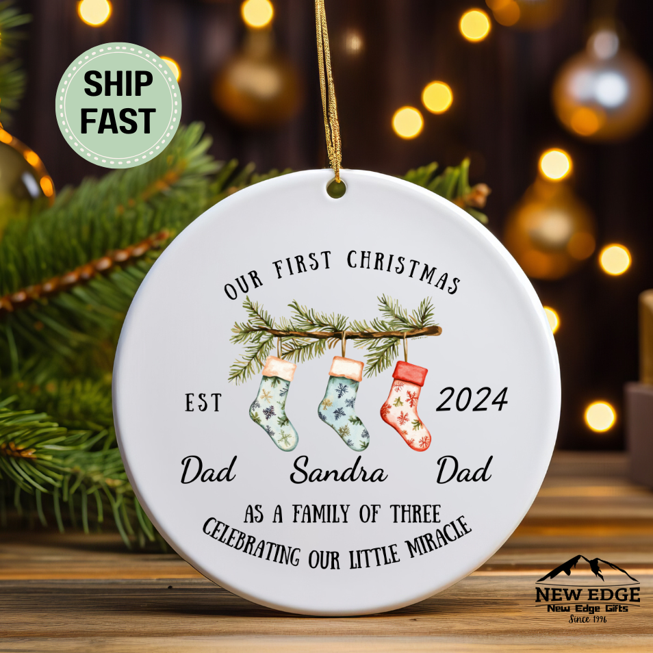 $12.44 USDOur First Christmas Ornament EST 2024 – Family of Three Personalized Ornament – Mom, Dad & Child Keepsake – A New Chapter Begins