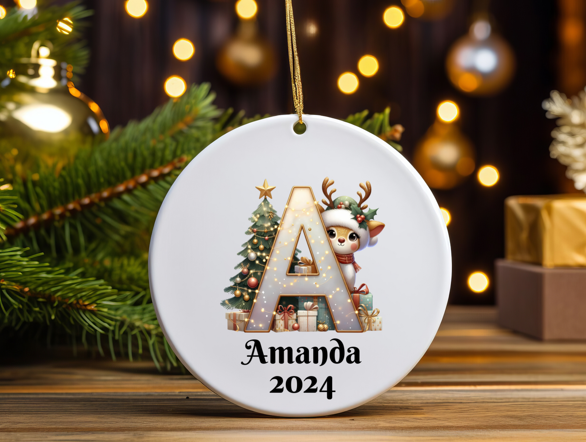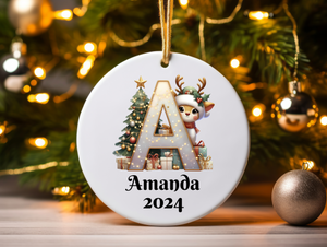 Family Christmas Ornament 2025 – Personalized Letter Monogram, Custom Name Keepsake, Holiday Decoration Gift