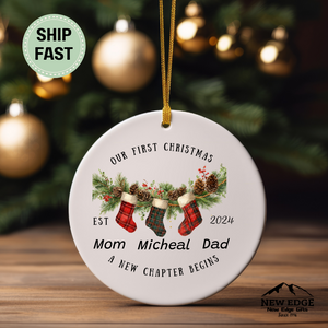 Our First Christmas Ornament EST 2024 – Family of Three Personalized Ornament – Mom, Dad & Child Keepsake – A New Chapter Begins