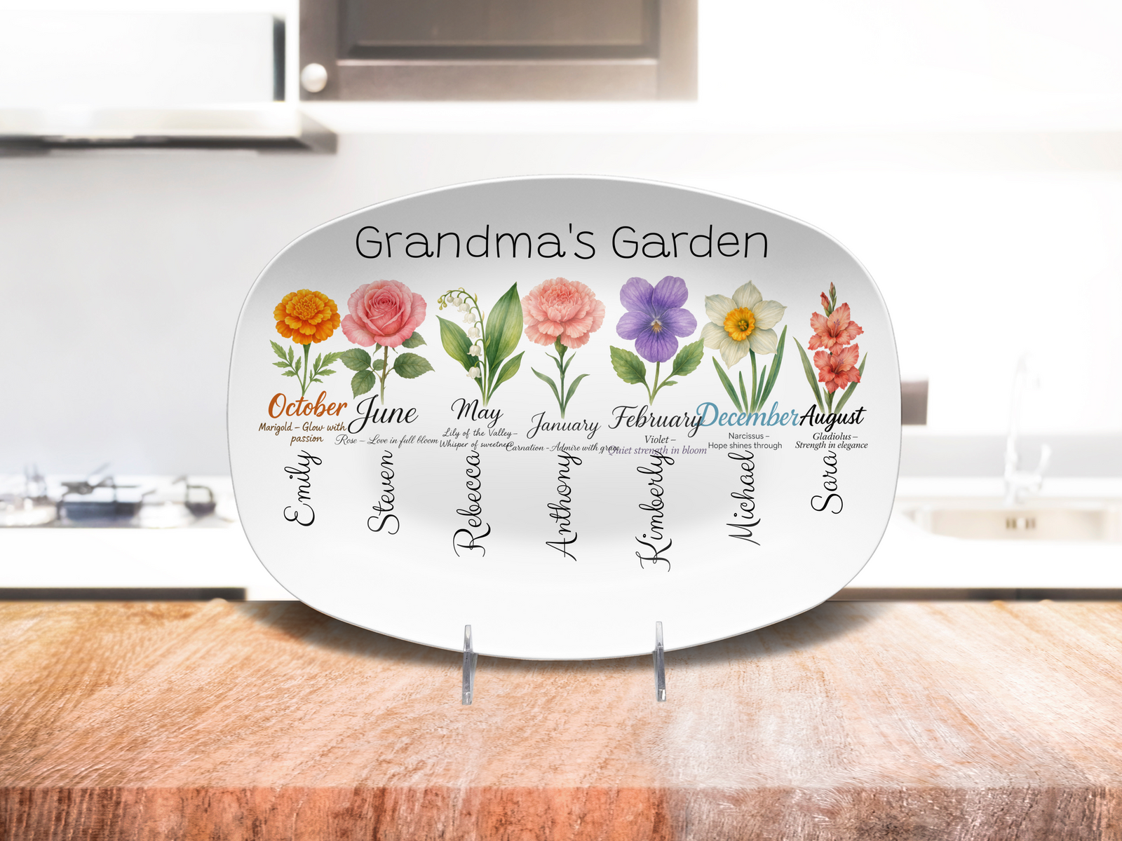 Custom Grandma’s Garden Platter – Personalized Family Name Serving Dish & Gift for Grandma