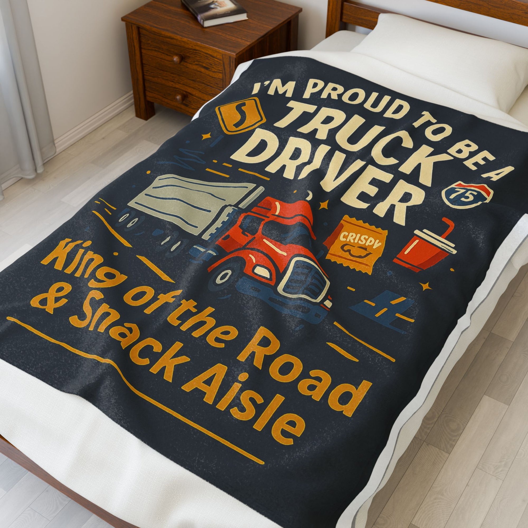 $38.52 USDTruck Driver Velveteen Blanket – Funny King of the Road & Snack Aisle Gift Throw