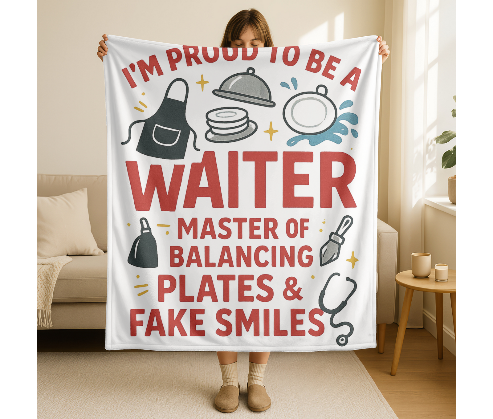 $38.52 USDWaiter Velveteen Blanket – I’m Proud to Be a Waiter Funny Plates & Smiles Throw