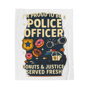 Police Officer Velveteen Blanket – Funny Donuts & Justice Served Fresh Throw