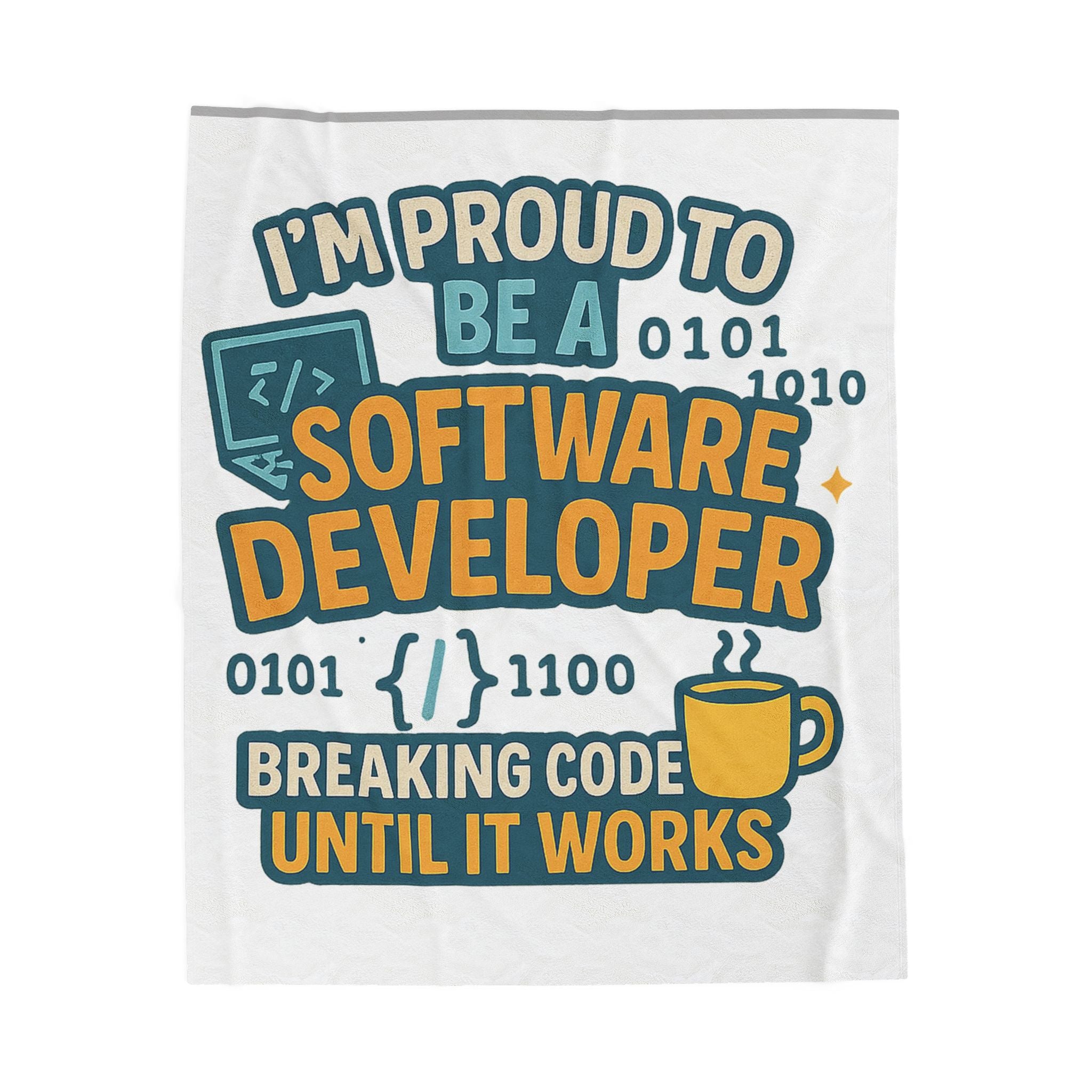 Celebrate the coding life with this ultra-soft velveteen blanket! Featuring the witty slogan “I’M PROUD TO BE A SOFTWARE DEVELOPER – Breaking Code Until It Works”, this cozy throw adds humor and pride to every programmer’s day. Perfect for developers, coders, or tech lovers, it makes a thoughtful and funny gift for late-night debugging sessions or relaxing after long coding marathons. Designed by New Edge Gifts & Novelties, this profession blanket is a must-have for every tech enthusiast.