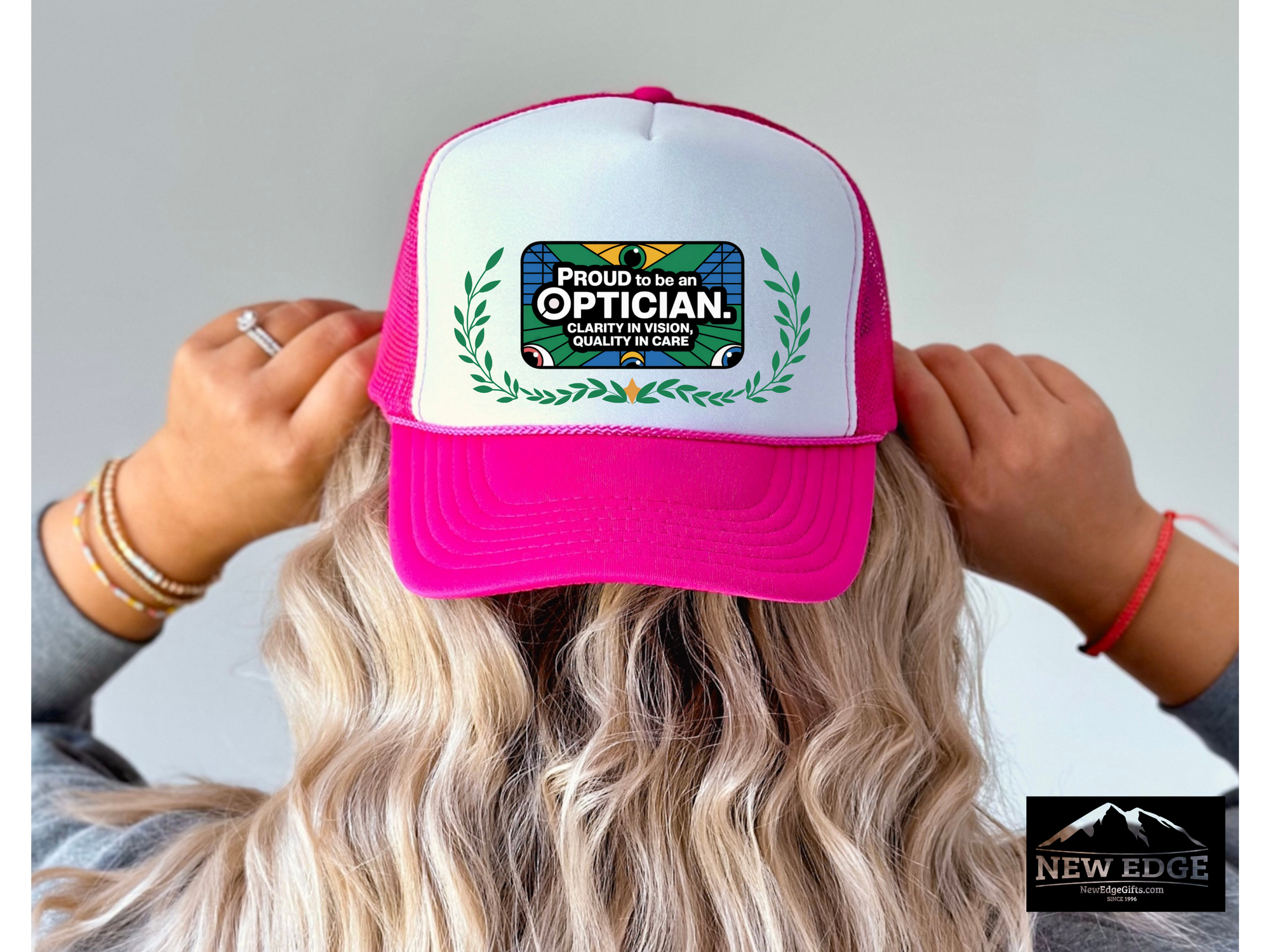 $18.99 USDOptician Trucker Hat – Proud to Be an Optician | Clarity in Vision, Quality in Care | Eye Care Professional Gift