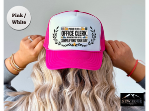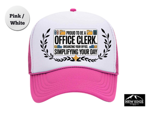 Office Clerk Trucker Hat – Proud to Be an Office Clerk | Organizing Your Office, Simplifying Your Day | Admin Staff Appreciation Gift