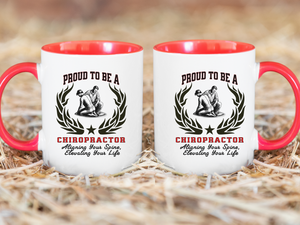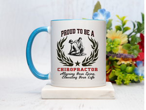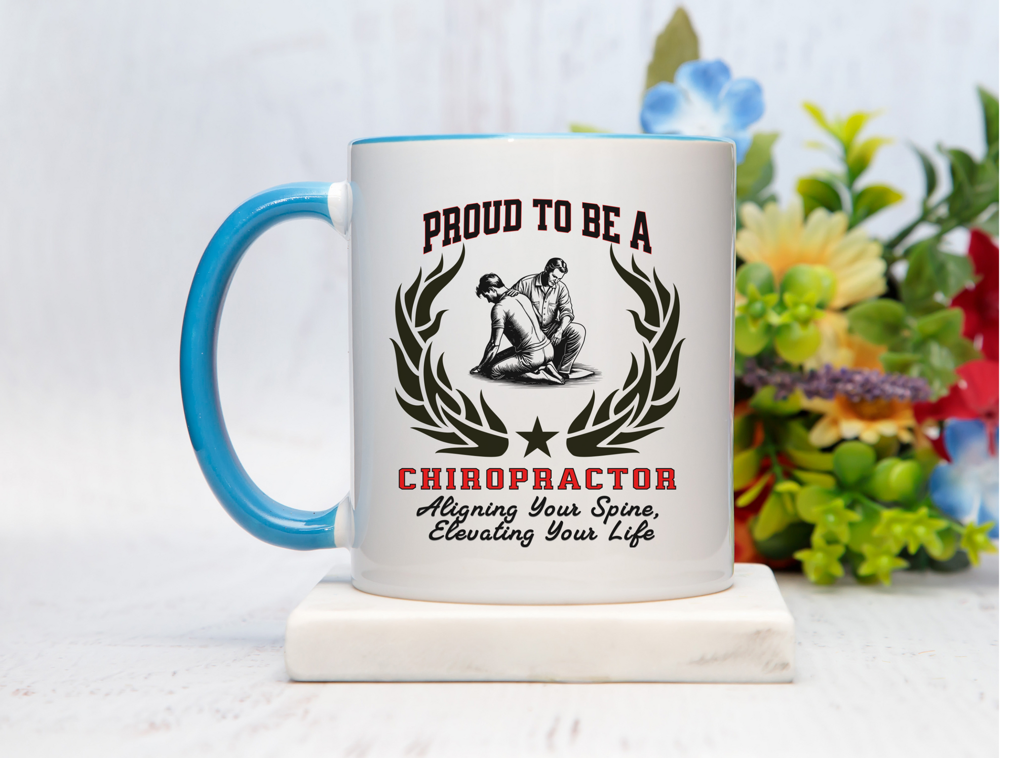 Show your pride in the healing profession with this inspiring “PROUD TO BE A CHIROPRACTOR” Accent Coffee Mug, featuring the empowering slogan: “Aligning Your Spine, Elevating Your Life.” Crafted by New Edge Gifts and Novelties, this high-quality ceramic mug is a perfect gift for chiropractors, chiropractic students, or clinic staff who bring wellness and balance to others every day.