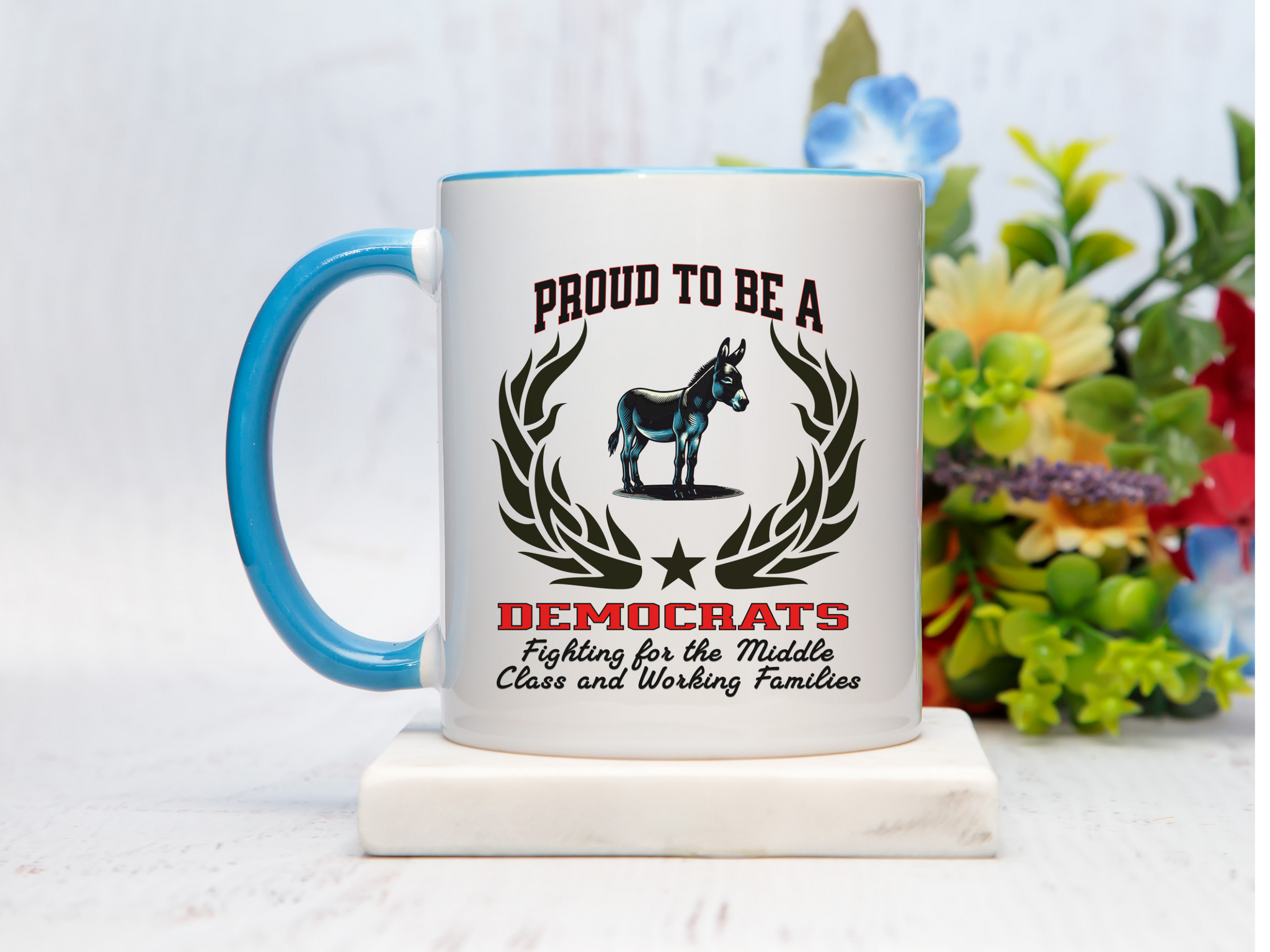 Show your values with every sip using our “PROUD TO BE A DEMOCRAT” Accent Coffee Mug, featuring the powerful slogan: “Fighting for the Middle Class and Working Families.” Created by New Edge Gifts and Novelties, this ceramic mug is perfect for anyone who stands for equality, economic fairness, healthcare access, and opportunity for all.