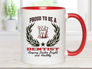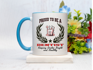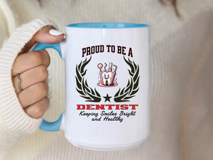 Start the day with purpose and pride using our “PROUD TO BE A DENTIST” Accent Coffee Mug, featuring the inspiring slogan: “Keeping Smiles Bright and Healthy.” Designed by New Edge Gifts and Novelties, this ceramic mug is perfect for dentists who blend science, care, and precision to bring confidence to every smile.