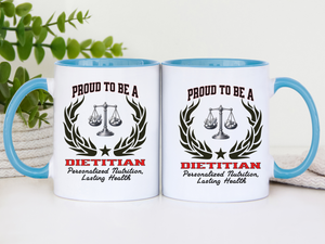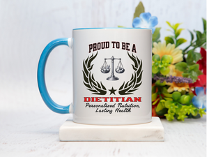 Celebrate the science of wellness with our “PROUD TO BE A DIETITIAN” Accent Coffee Mug, featuring the empowering slogan: “Personalized Nutrition, Lasting Health.” Designed by New Edge Gifts and Novelties, this high-quality ceramic mug honors the dedicated professionals who guide individuals toward healthier, more balanced lives.