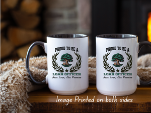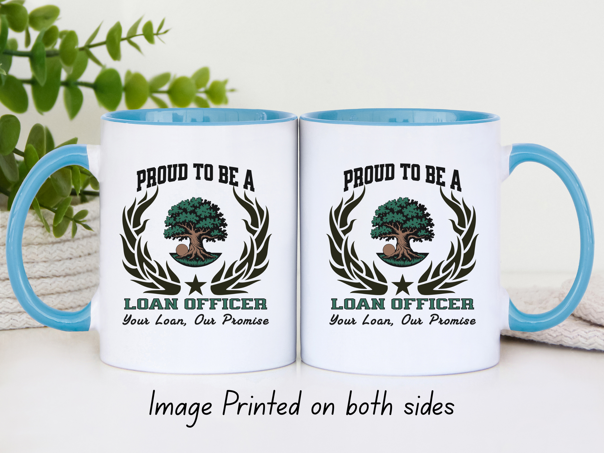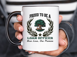 Celebrate the professionals who help dreams become reality with the “PROUD TO BE A LOAN OFFICER” Accent Coffee Mug, featuring the confident and client-focused slogan: “Your Loan, Our Promise.” Exclusively from New Edge Gifts and Novelties, this two-tone ceramic mug honors the dedication and trustworthiness of loan officers who guide clients through the financial process.