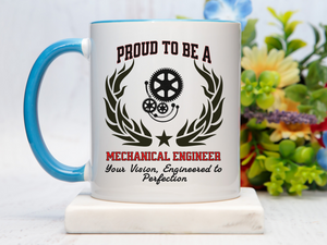 PROUD TO BE A MECHANICAL ENGINEER Accent Coffee Mug – “Your Vision, Engineered to Perfection” – Engineering Gift by New Edge Gifts and Novelties